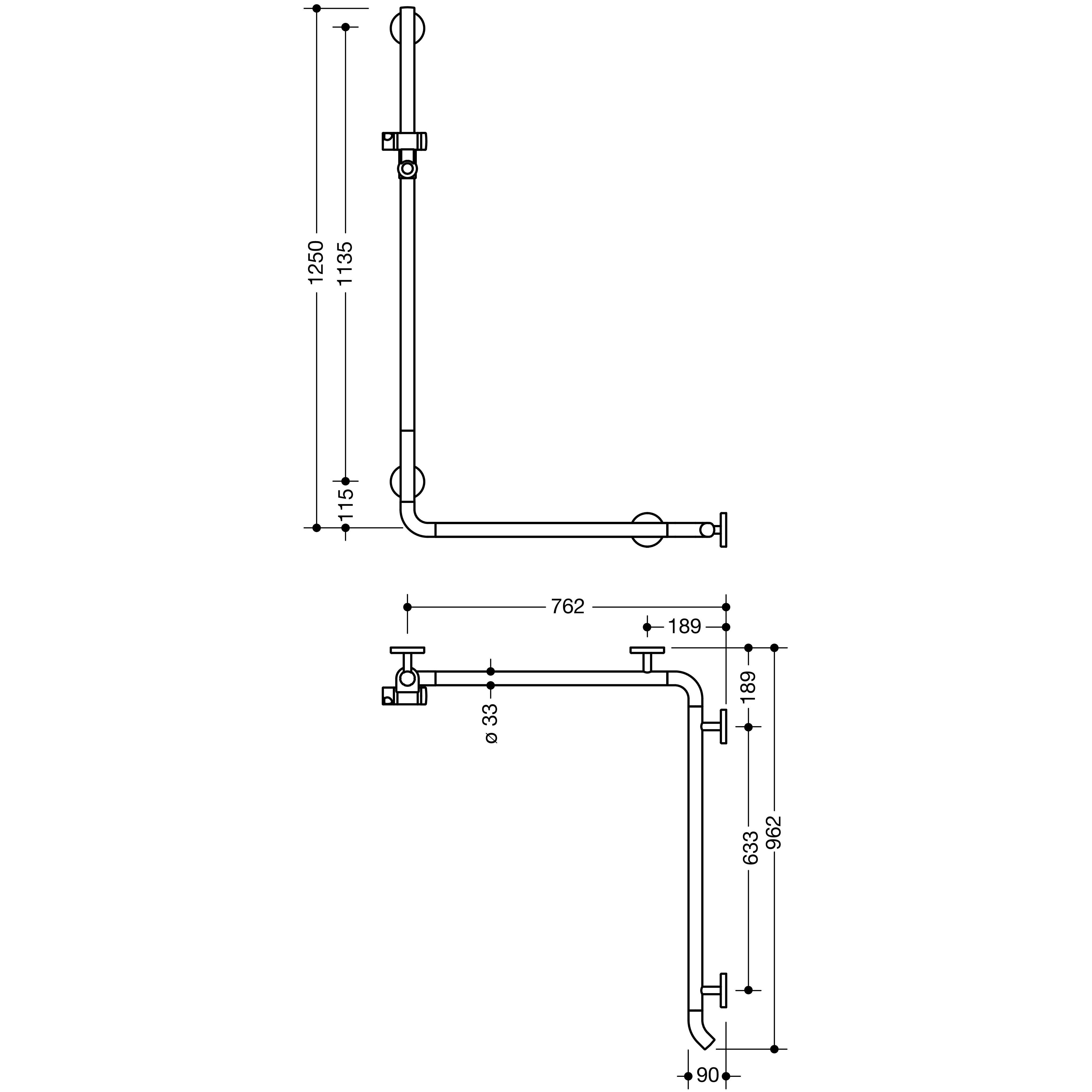 HEWI Warm Touch Duschhandlauf mit Brausehalterstange, 125 x 76,2 x 96,2 cm