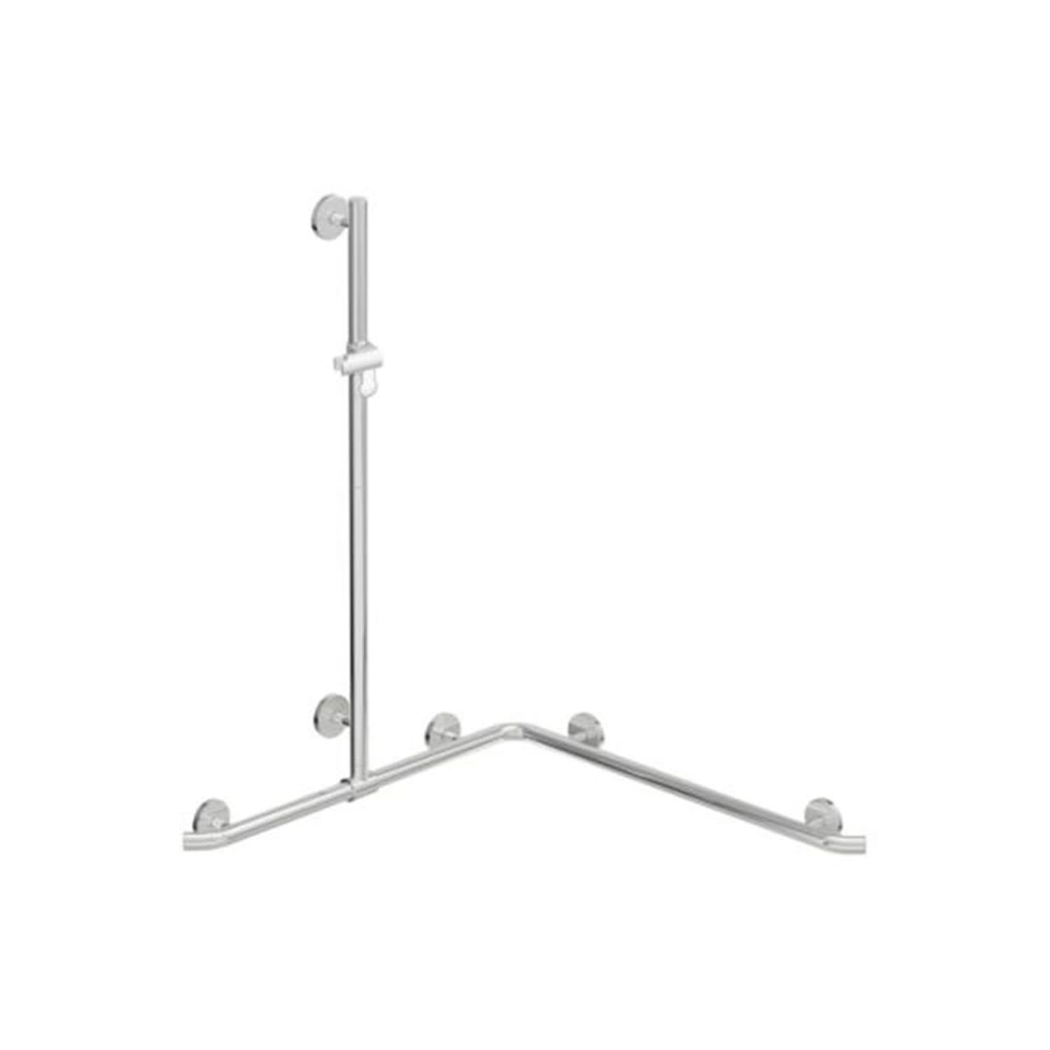 HEWI Warm Touch Duschhandlauf mit verschiebbarer Brausehalterstange, Eckmontage, 125 x 96,2 cm
