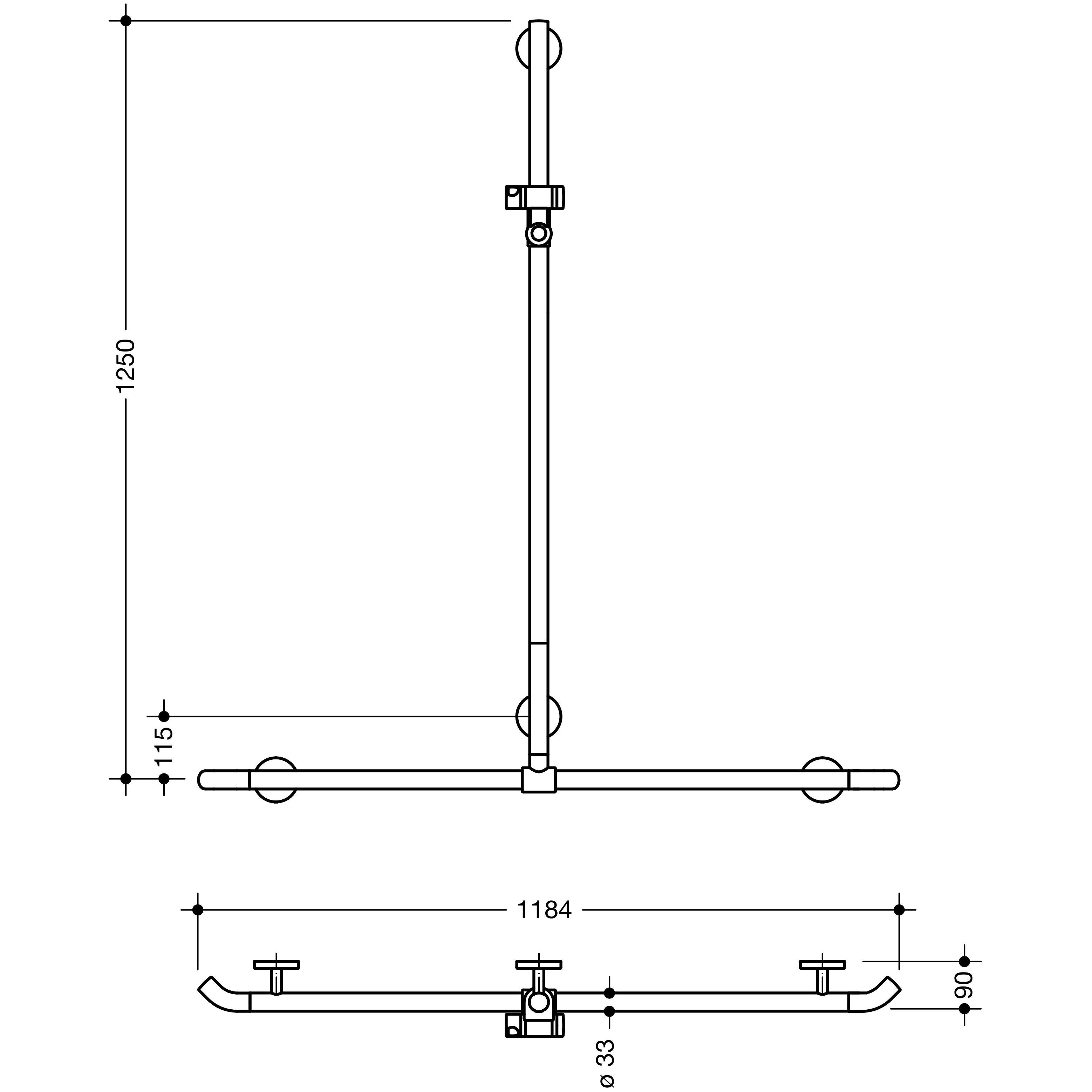 - senkrecht und waagerecht angeordnete, im rechten Winkel verbundene Stangen mit Brausehalter