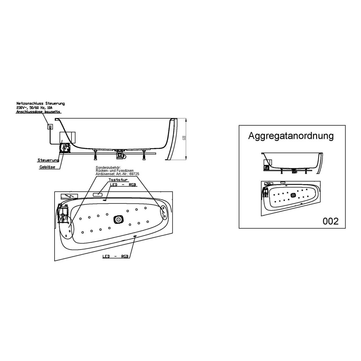 - Whirlwanne mit Whrilsystem iSensi inkl. vormontiertem Untergestell und Überlaufgarnitur, Anschlussschlauch zur Verbindung an HT-Hausanschluss
