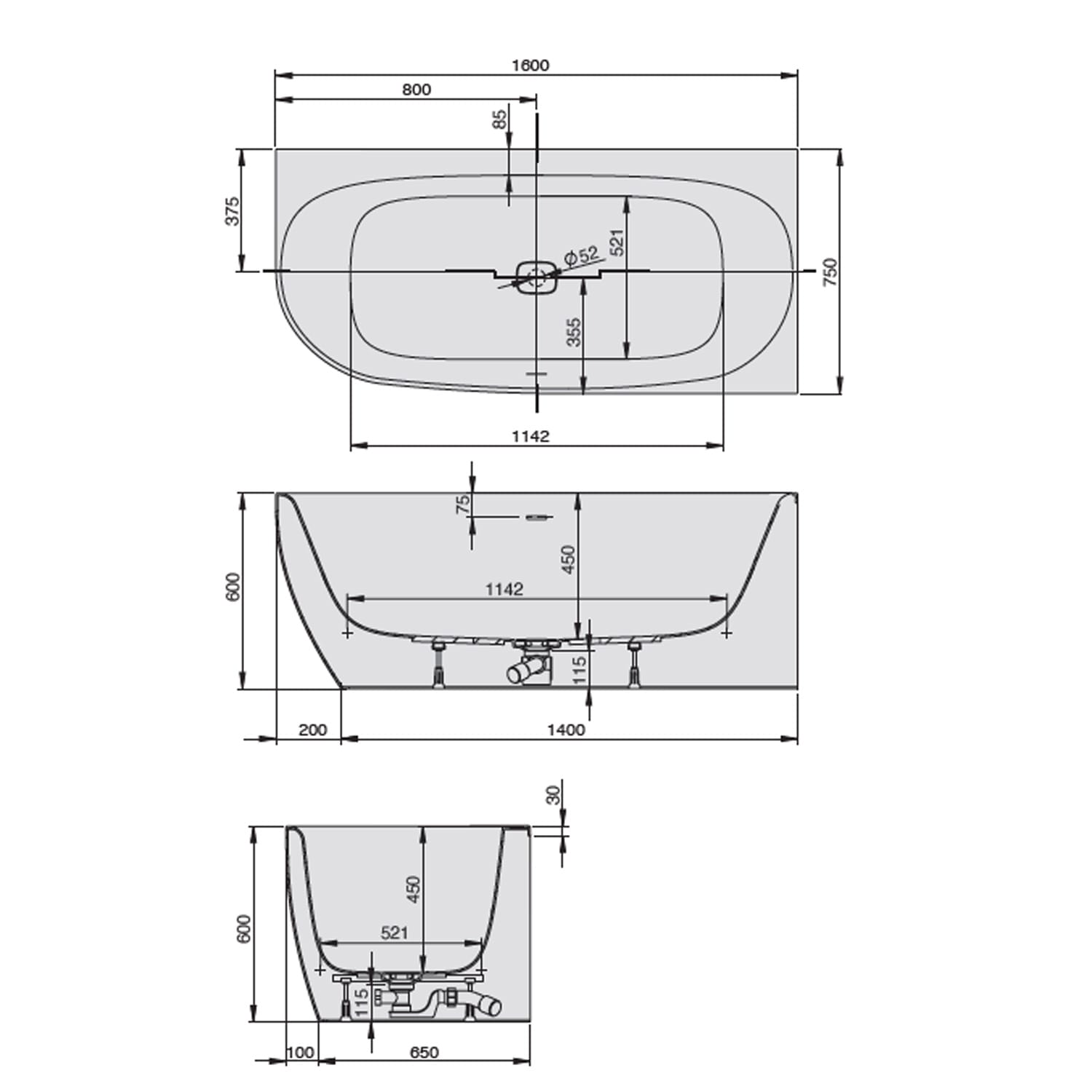 pianura Valentina Vorwand-Badewanne 180 x 80 cm