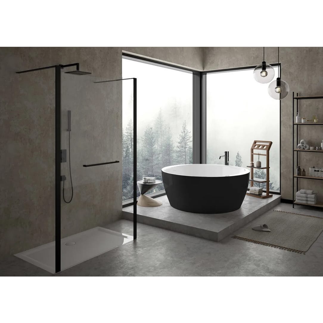 - freistehende Badewanne aus Acryl mit fester, angeformter Schürze (Monolith)