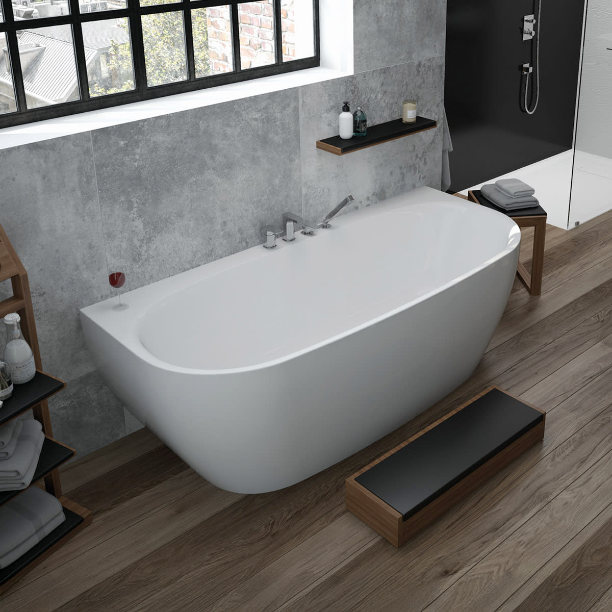 - Badewanne aus Acryl mit fester Schürze (Monolith) inkl. vormontiertem Untergestell