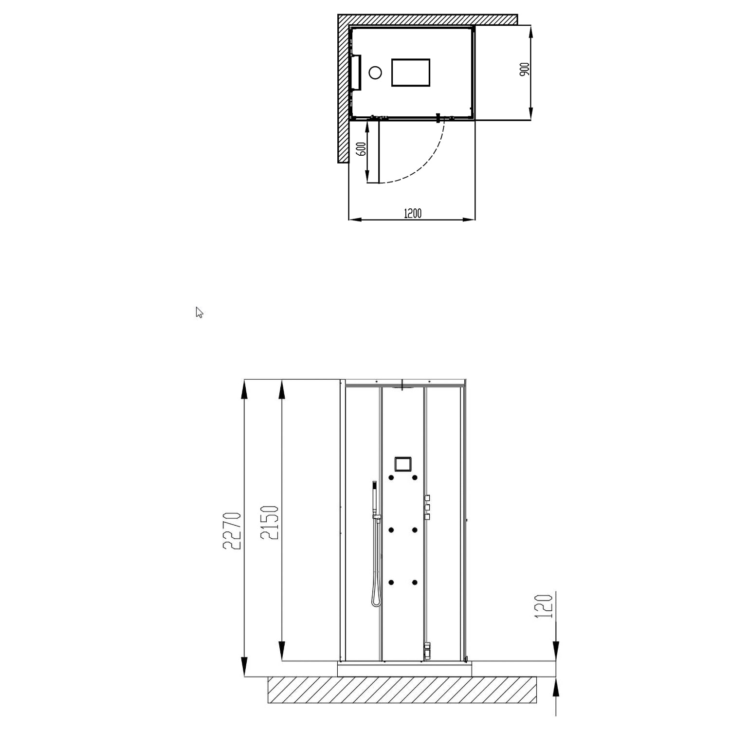 Die Deckenhöhe am Aufstellort sollte mindestens 12 cm mehr als die Kabinenhöhe betragen.