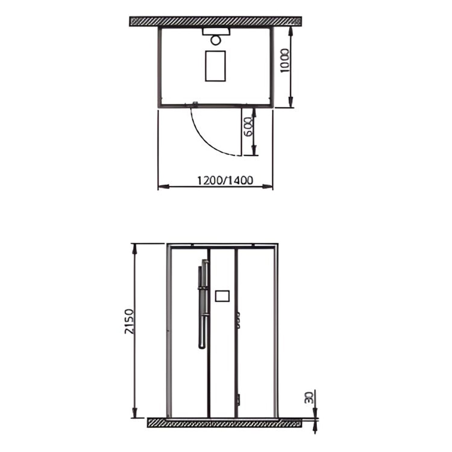 Die Deckenhöhe am Aufstellort sollte min. 12 cm mehr als die Kabinenhöhe betragen.