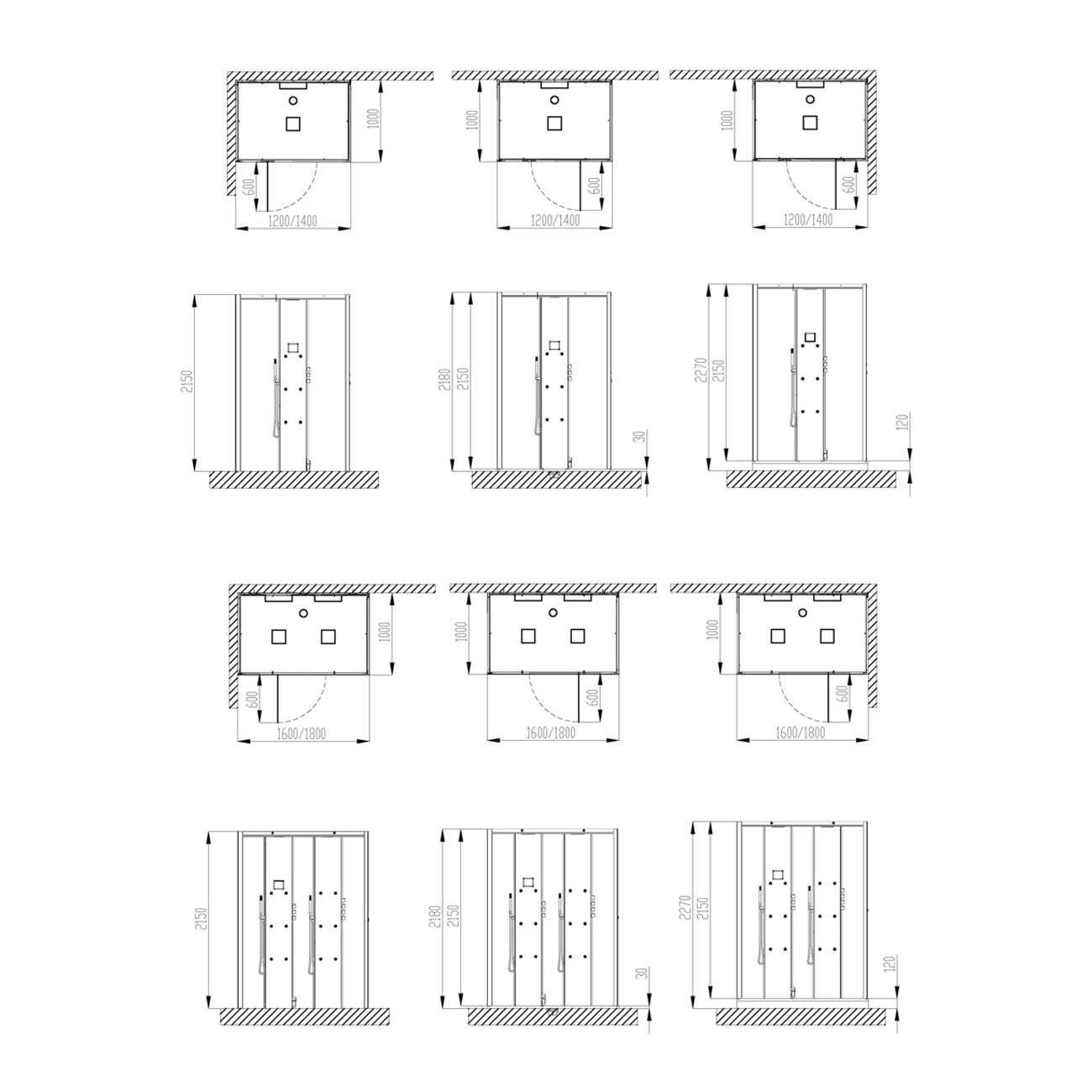 Die Deckenhöhe am Aufstellort sollte mindestens 12 cm mehr als die Kabinenhöhe betragen.