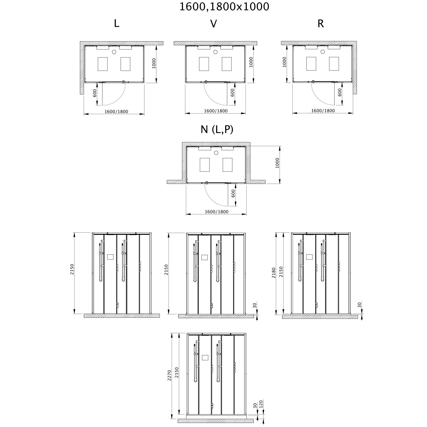 für Nische, Türanschlag links und Duschwanne mit Antirutsch