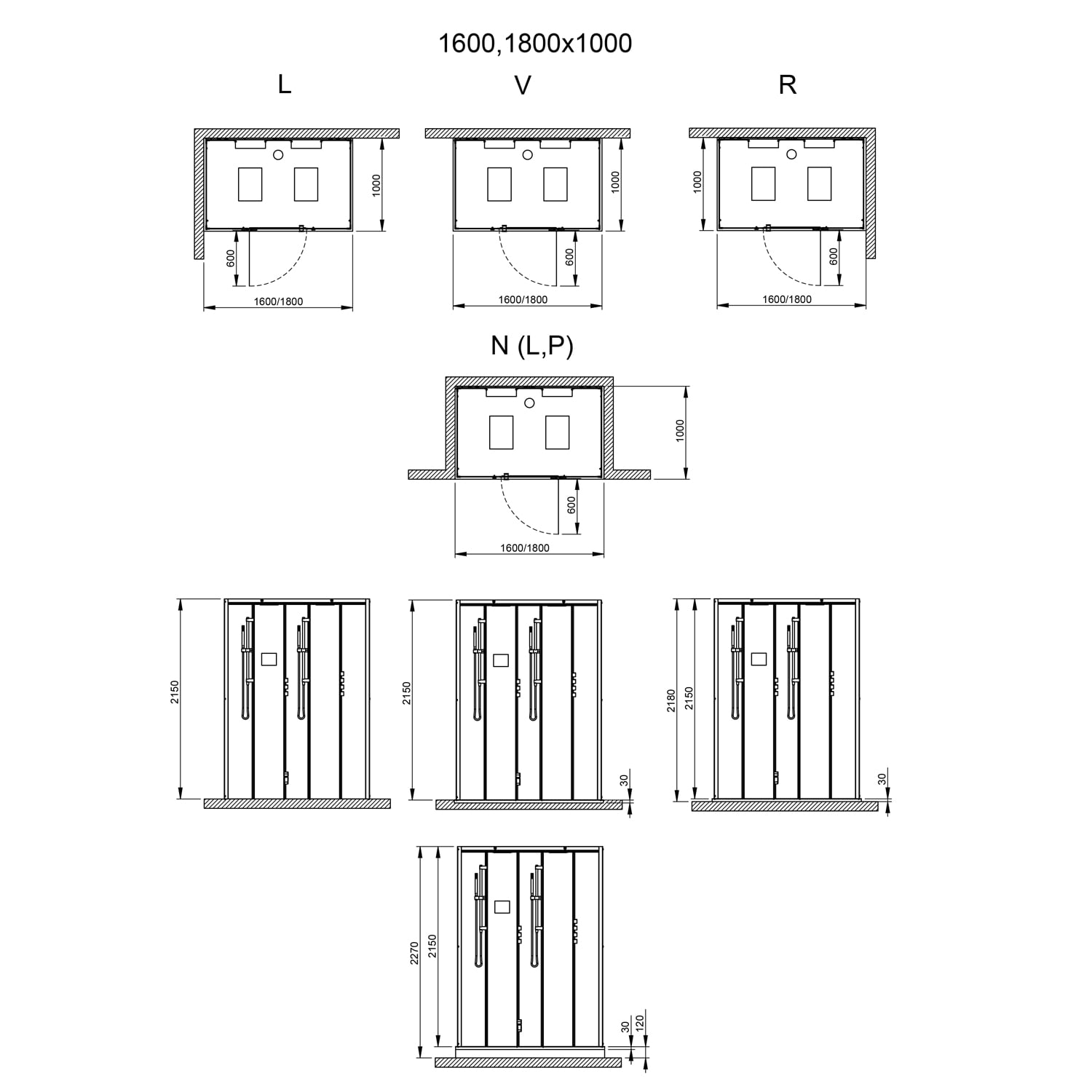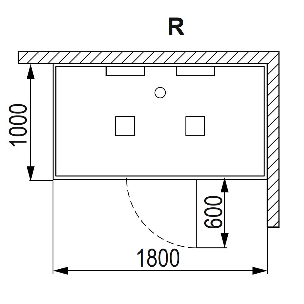 HOESCH SensePerience Dampfbad 180 x 100 cm für Ecke links, ohne Duschwanne