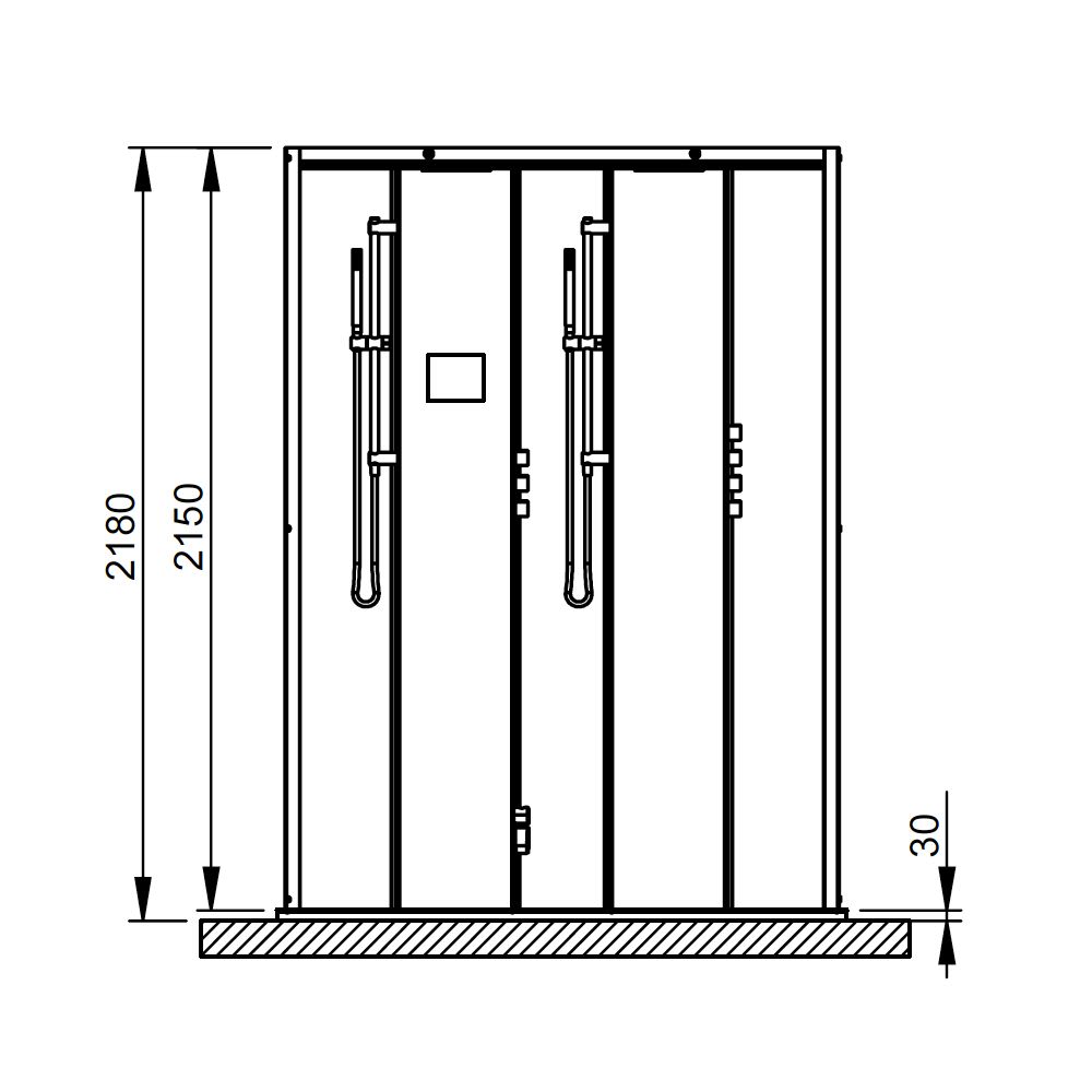 Die Deckenhöhe am Aufstellort sollte min. 12 cm mehr als die Kabinenhöhe betragen.