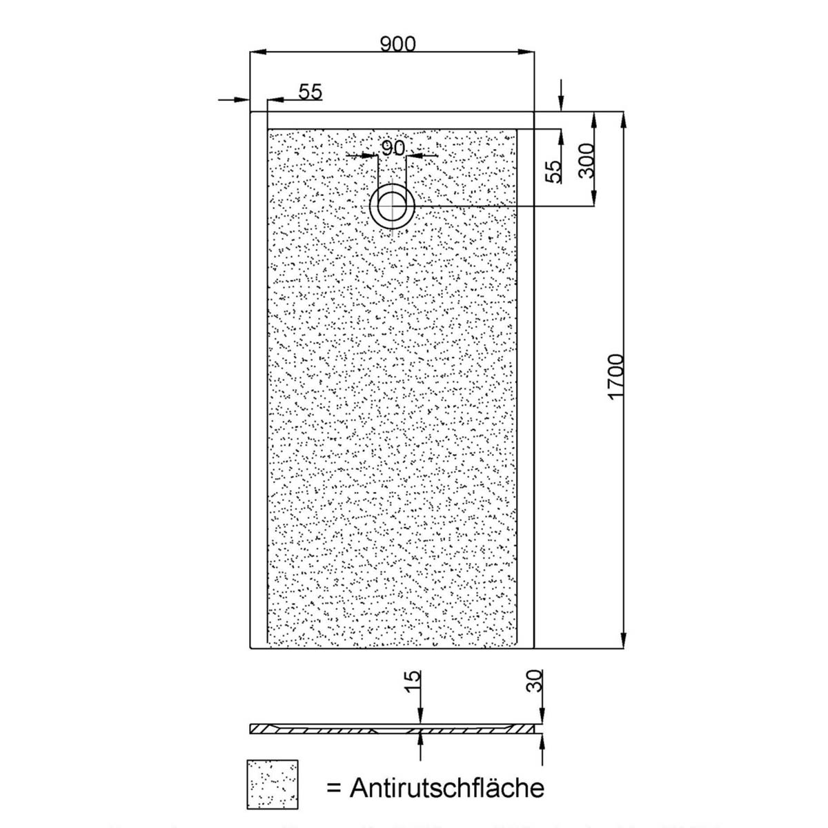 Hoesch Muna S Rechteckduschwanne 170 x 90 cm mit Antirutsch