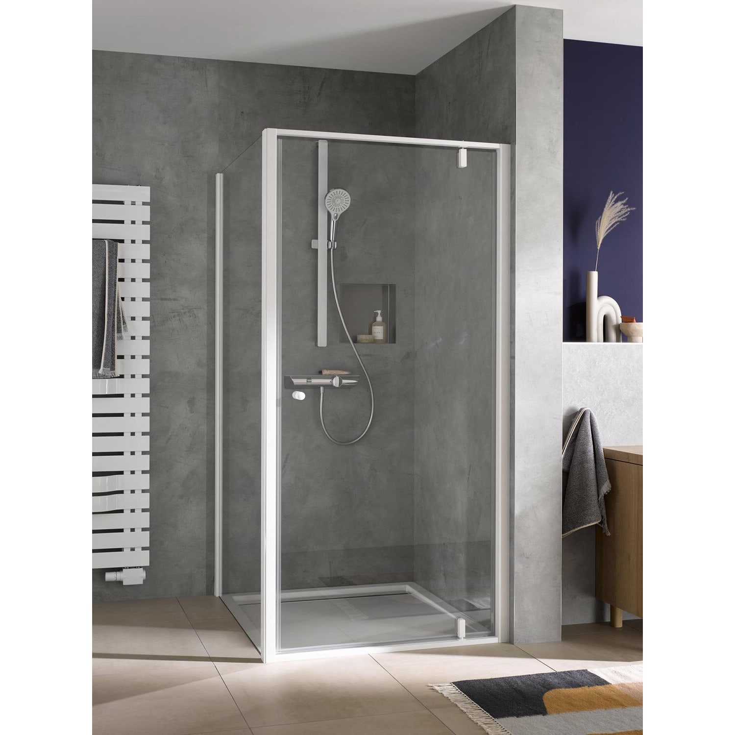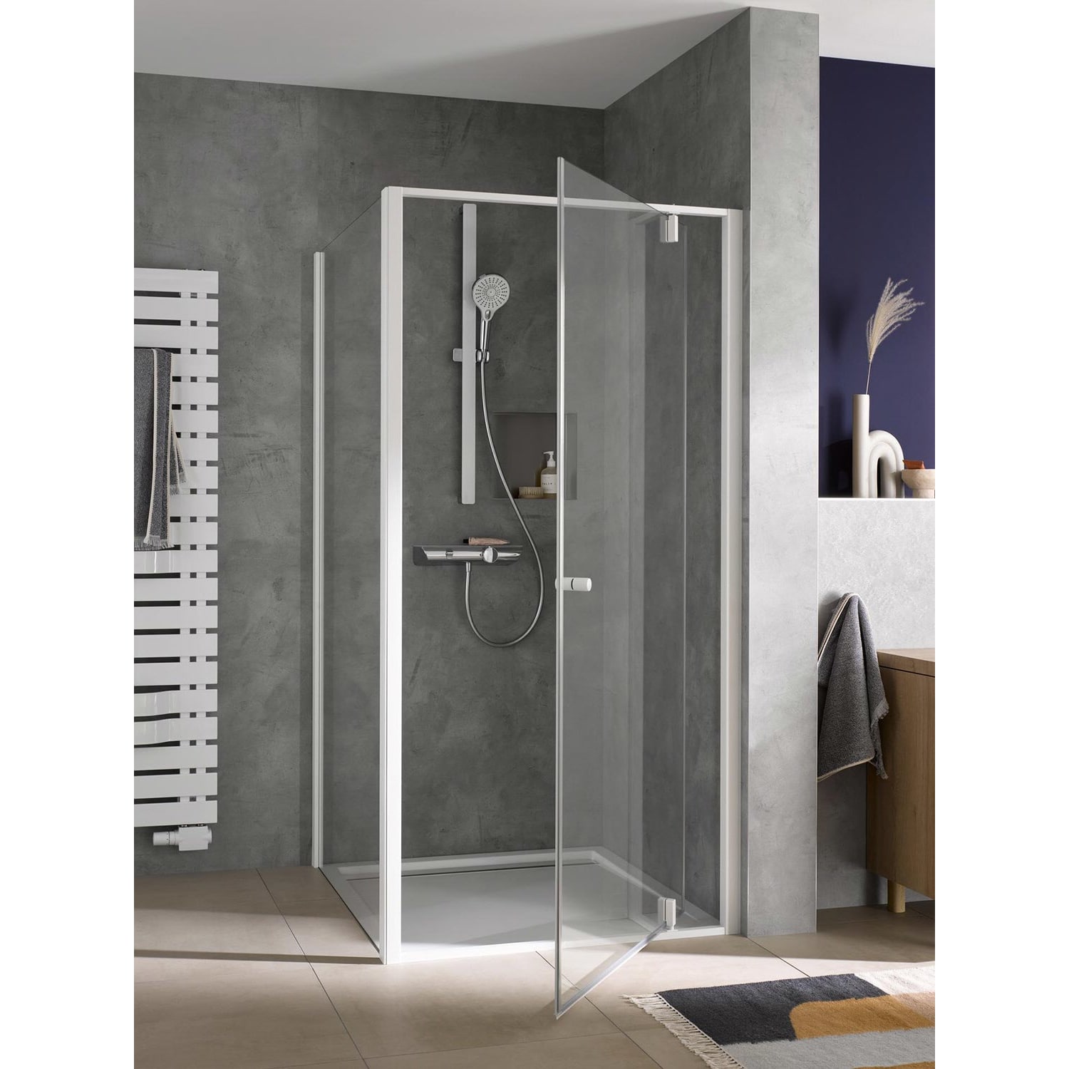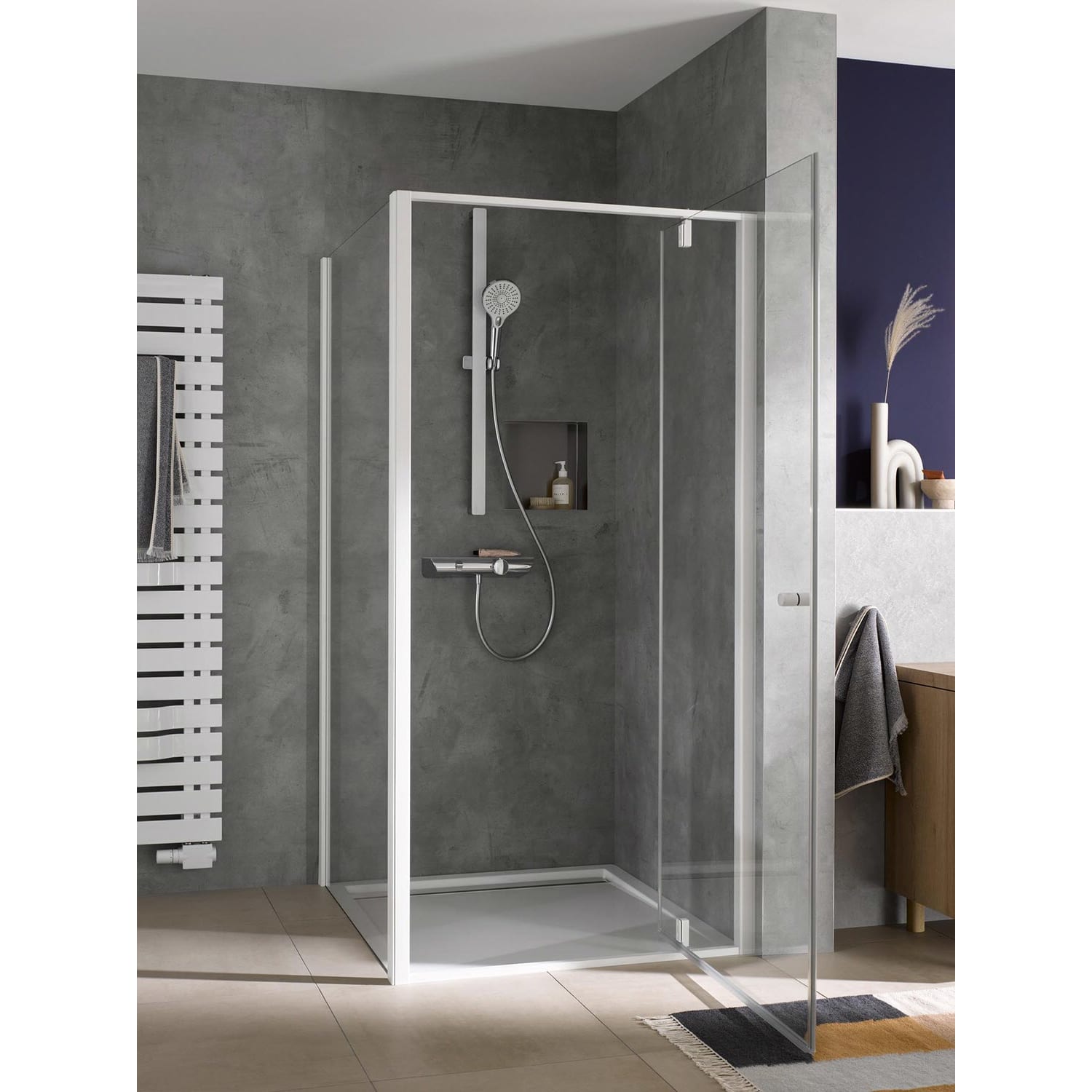- mit großzügiger Echtglasablage in weiß