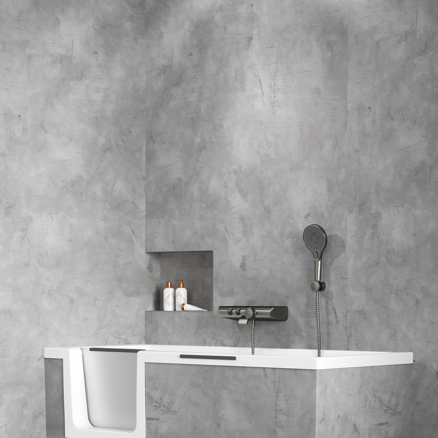 - Designhandbrause AquaXPro mit drei Strahlarten (Rain, SoftRain, Massage) und Handbrausehalter