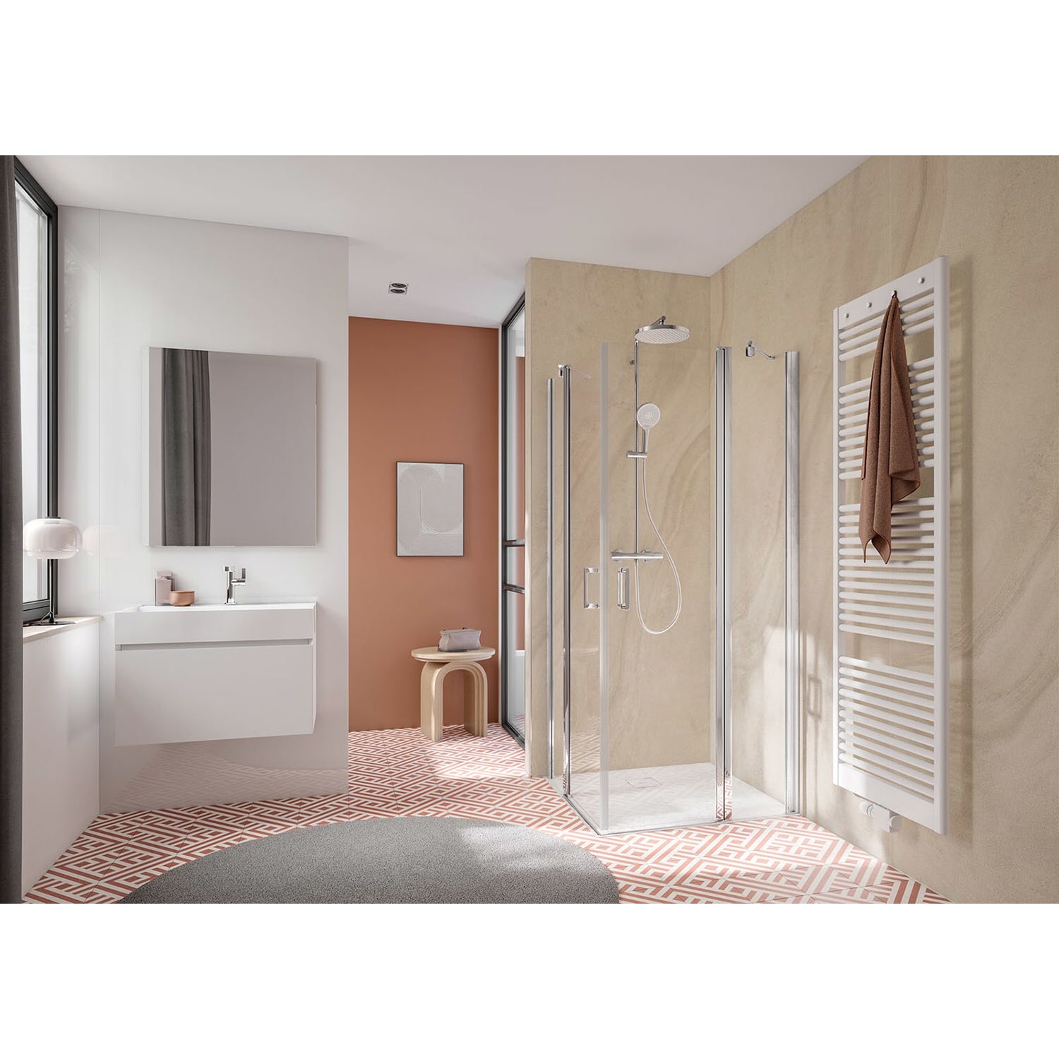 Anschluss-Set (bestehend aus Anschluss- und Thermostatarmatur) nicht im Lieferumfang enthalten.