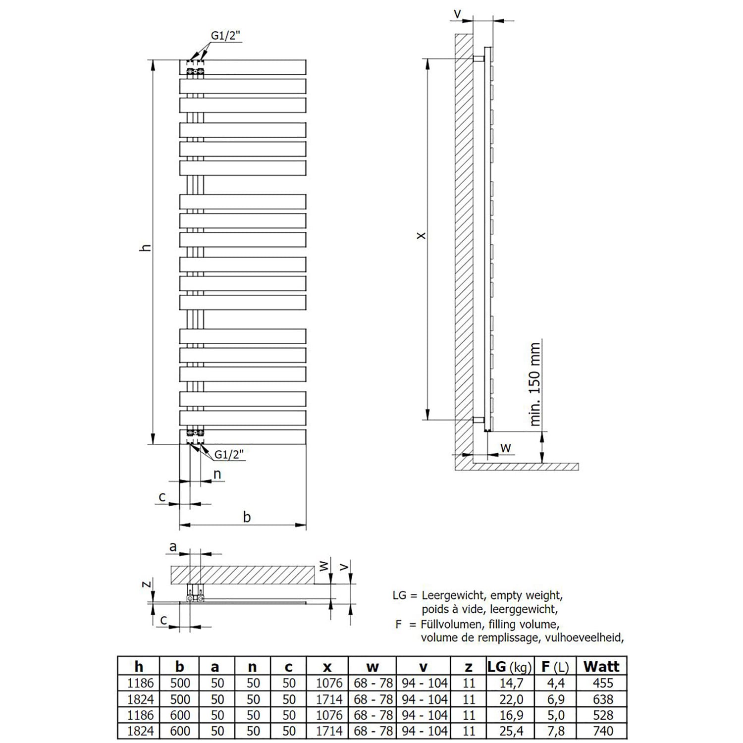 nach EN 442 / 638 Watt