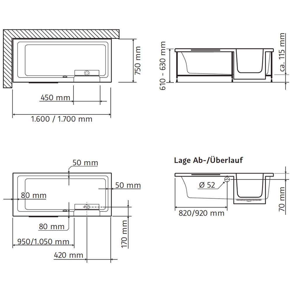 HSK Dusch-Badewanne Dobla 160 cm Einstieg rechts mit Antislip