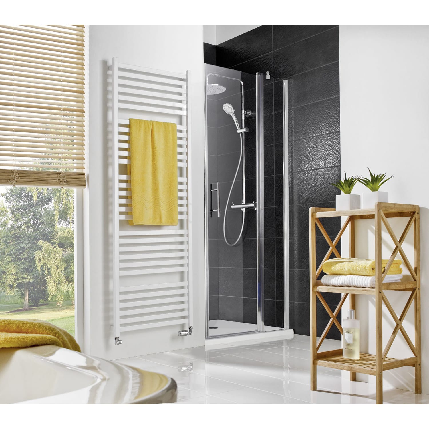 Scharniere, Drehlager, Griffe, Stabilisationsbügel und ggfs. weitere Kunststoff- und Zubehörteile sind immer in Chrom