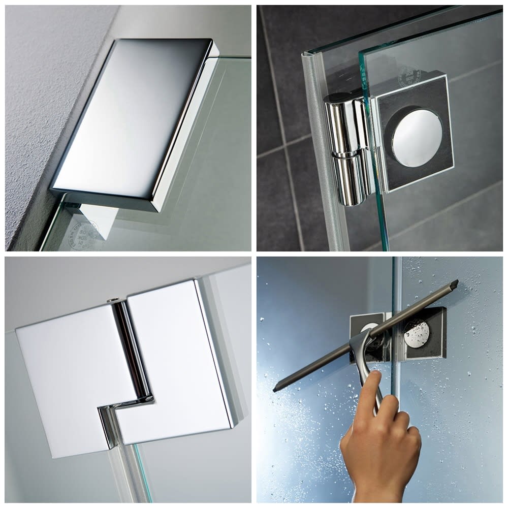 Auf Wunsch ist die Verglasung mit einer Edelglas-Beschichtung möglich. Diese einseitig aufgetragene Beschichtung minimiert das Antrocknen von Wassertropfen und das Festsetzen von Schmutz und Kalk. Die Reinigung der Verglasung wird damit erleichtert - allerdings nicht erspart.