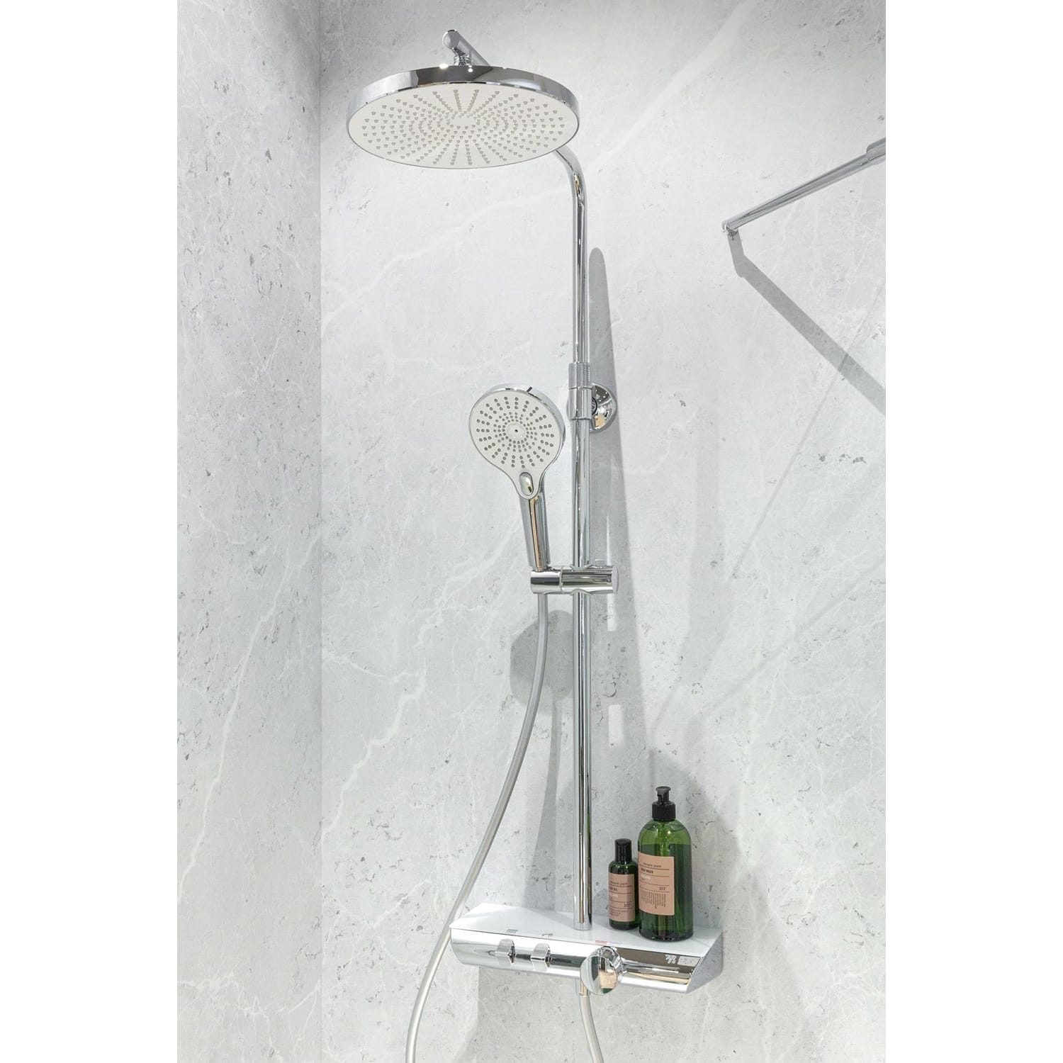 - Hohenverstellbare Halterung an der Brausestange