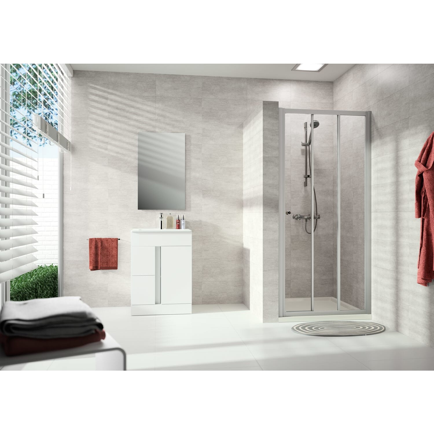 - zum Einbau in einer Nische und zur Kombination als Ecklösung mit Alpha 2 Seitenwand geeignet