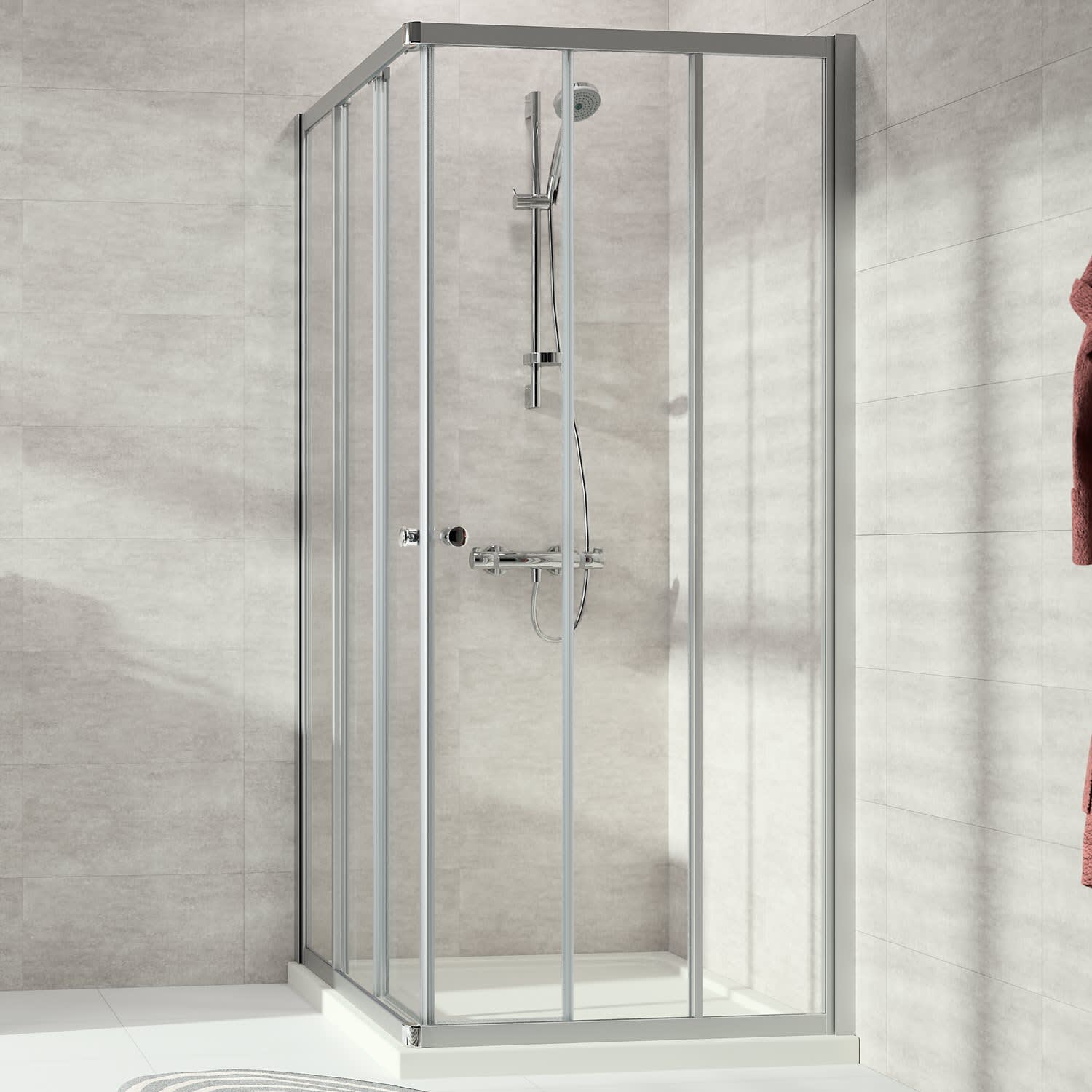 HÜPPE Alpha 2 teilgerahmt 4-Eck Gleittüreckeinstieg 3-teilig, 70/70 x 200 cm, Glas mit Anti-Plaque