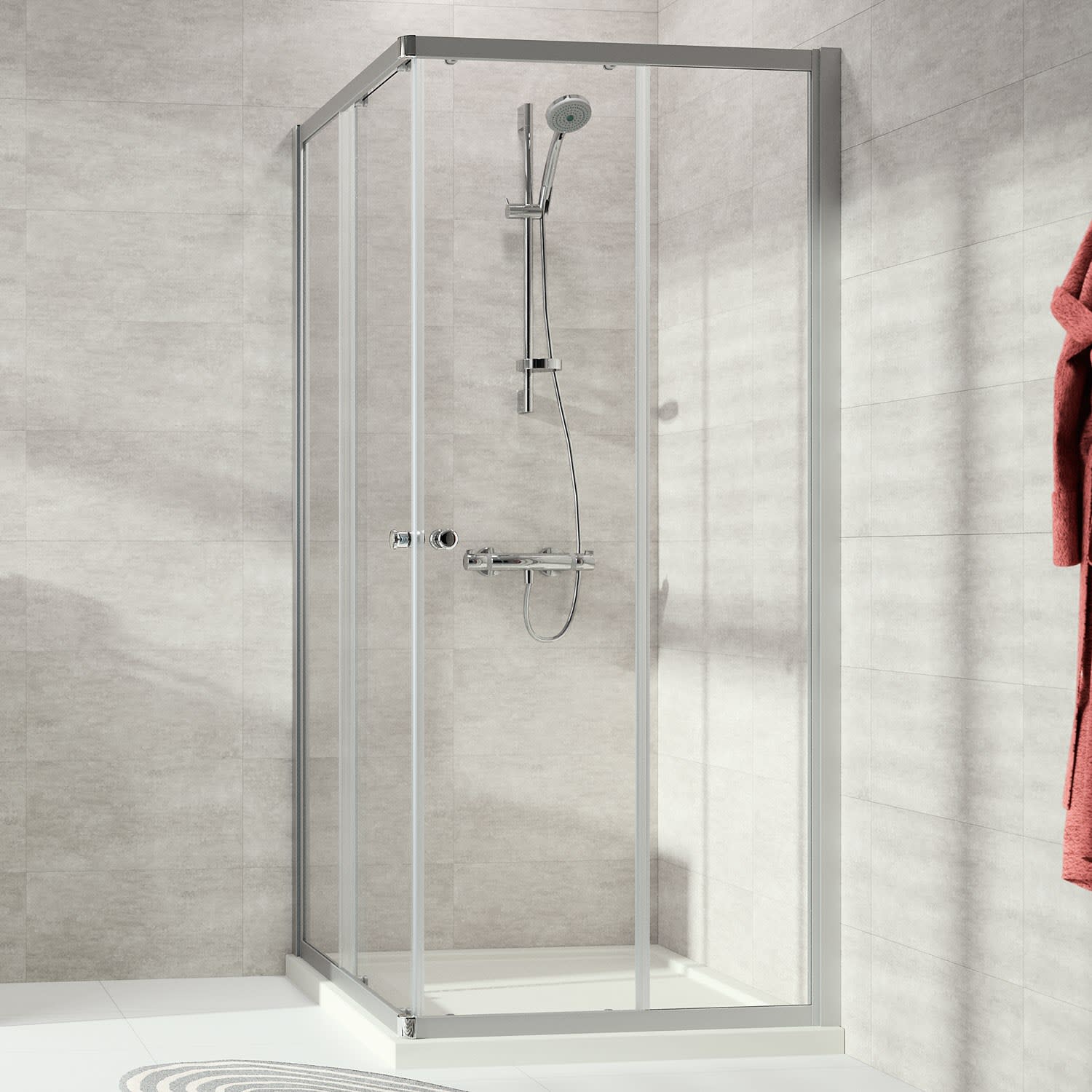 HÜPPE Alpha 2 teilgerahmt 4-Eck Gleittüreckeinstieg 2-teilig, 120 x 190 cm, Glas mit Anti-Plaque