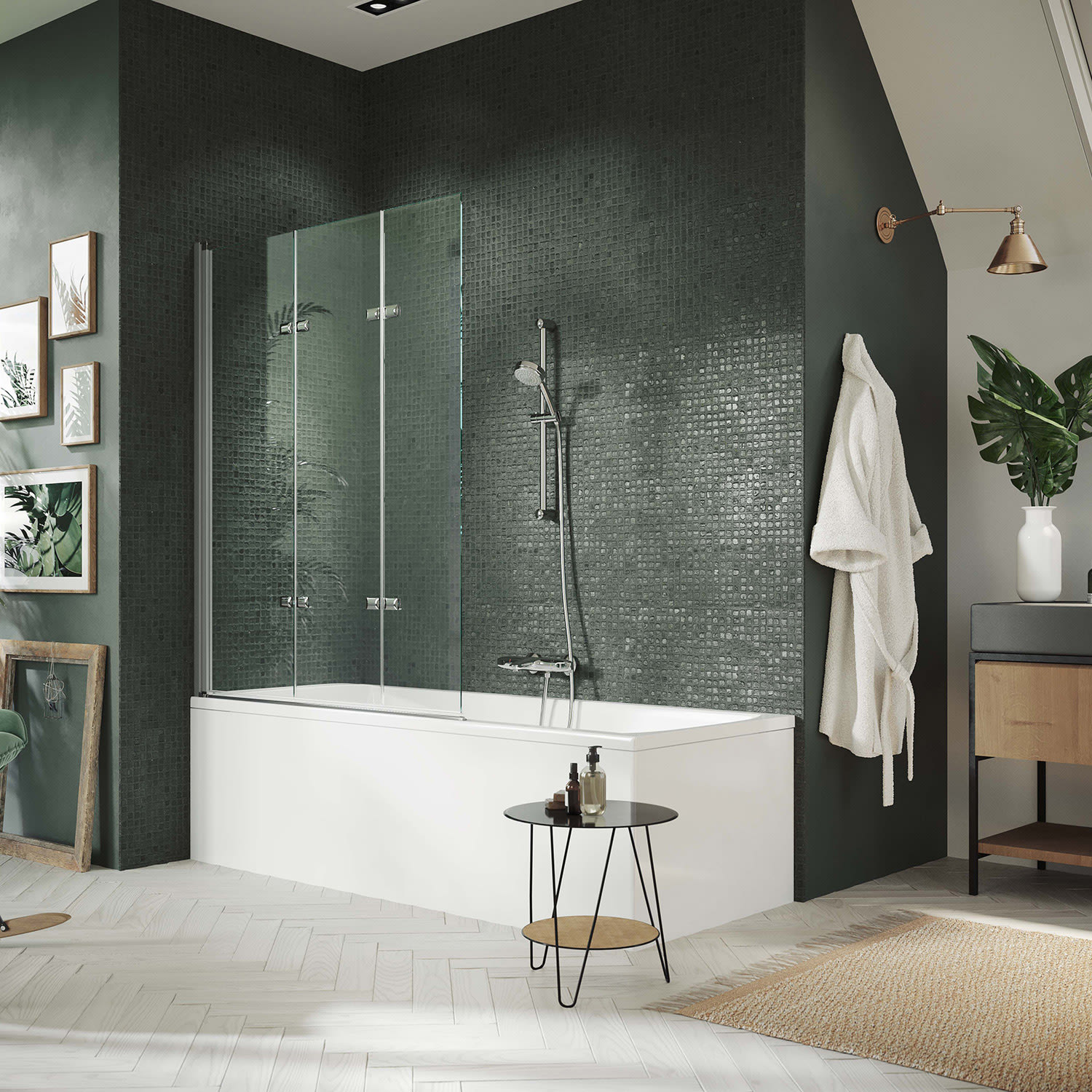 HÜPPE Design pure Badewannenabtrennung 3-teilig B: 100-120 H: bis 150 cm Linksbefestigung, Glas ohne Anti-Plaque
