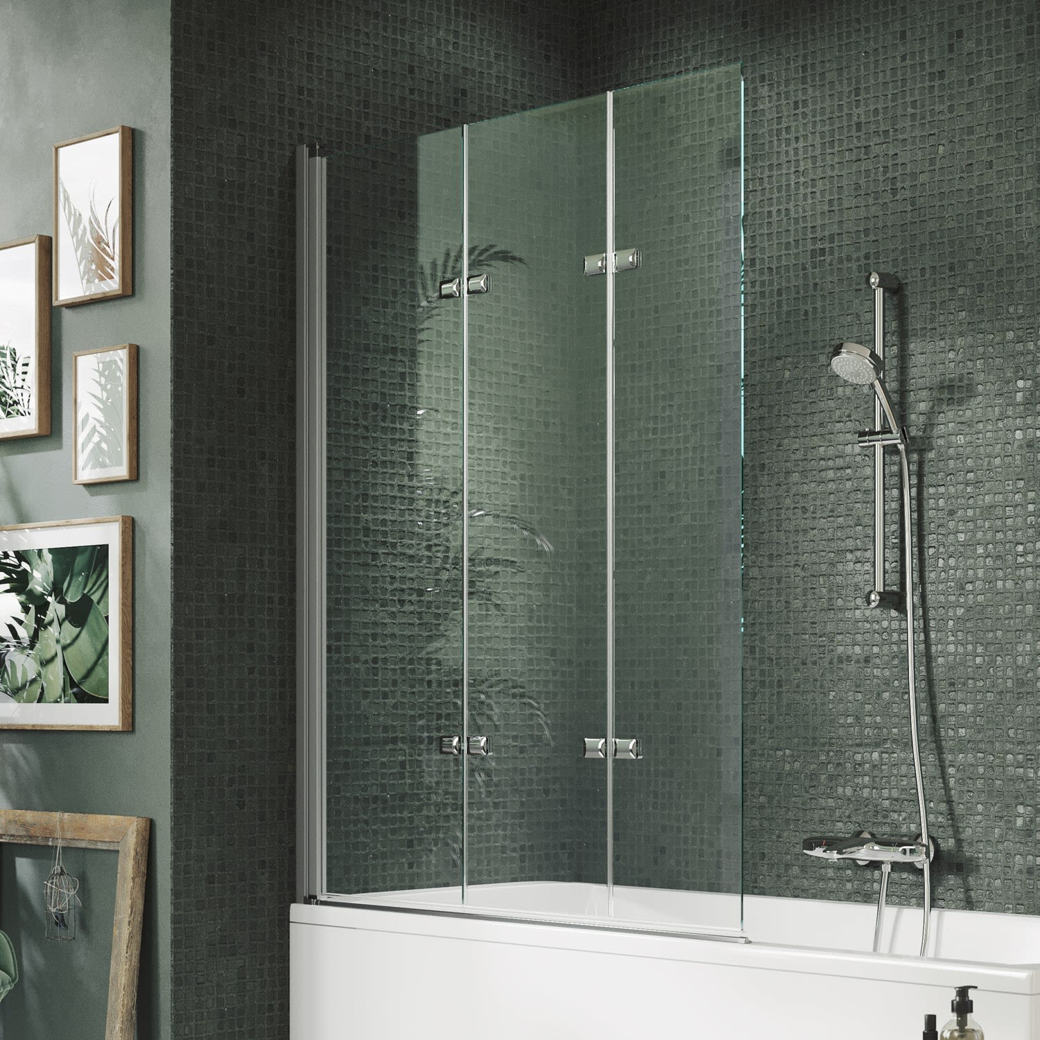 HÜPPE Design pure Badewannenabtrennung 3-teilig B: 120,1-140 H: bis 150 cm Linksbefestigung, Glas ohne Anti-Plaque