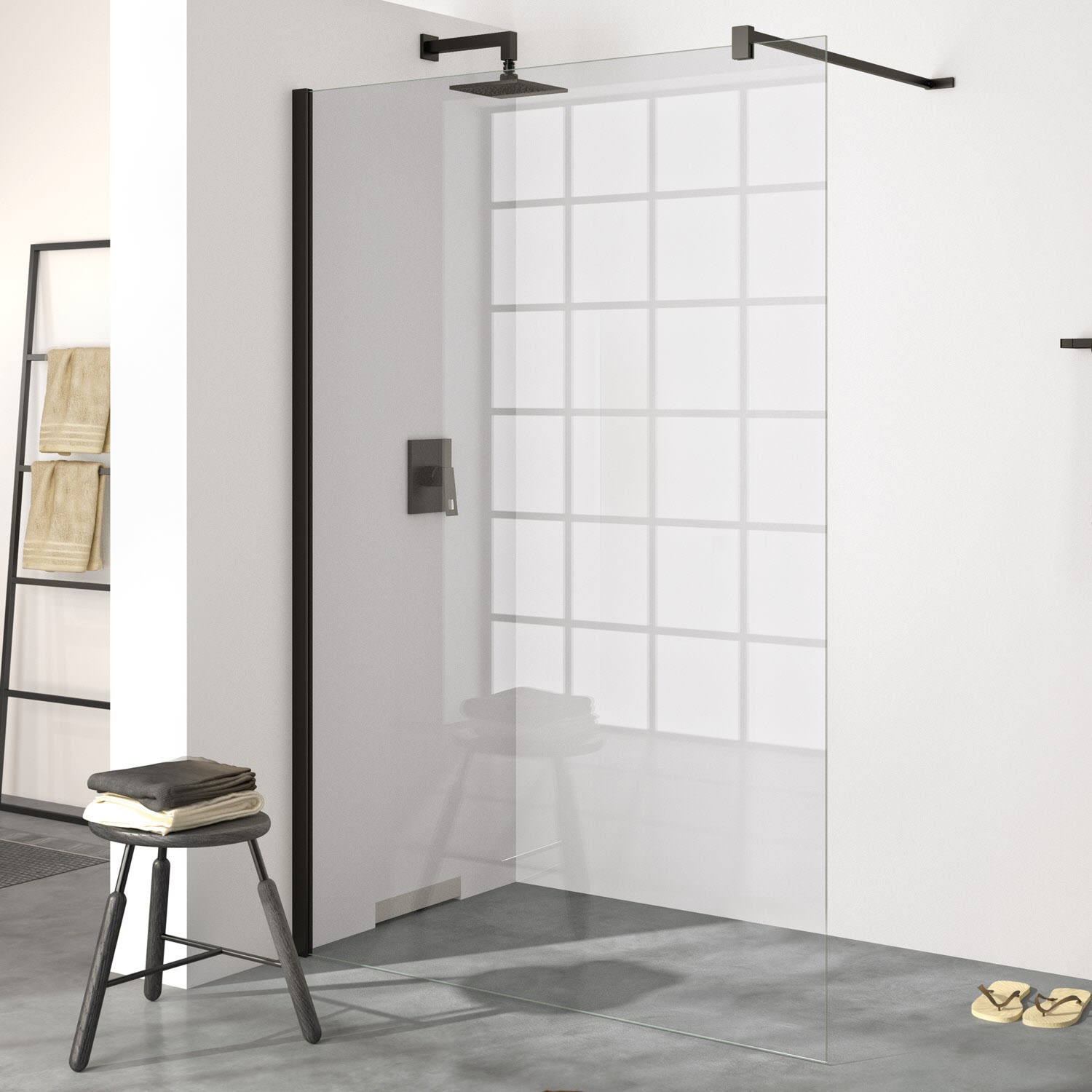 HÜPPE Design pure Walk-In Seitenwand 100 cm, mit Querstrebe, Glas 8 mm mit Anti-Plaque