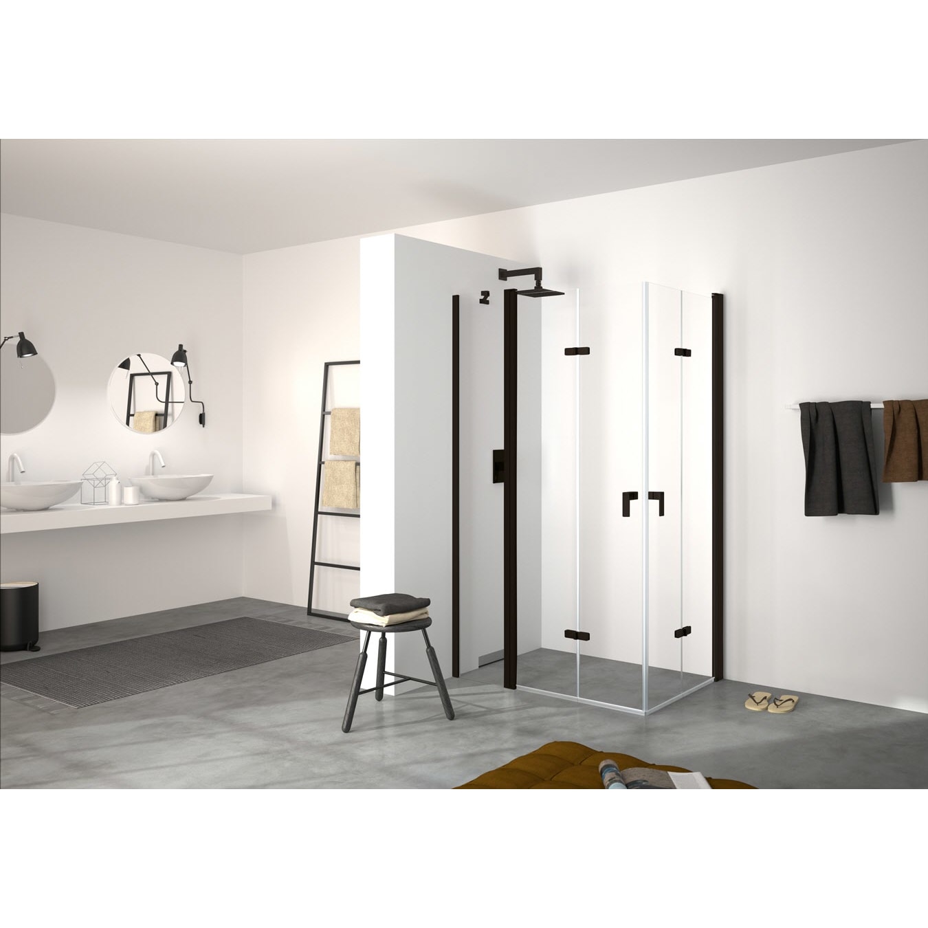 - zur Kombination als Ecklösung mit Seitenwand oder als Eckeinstieg