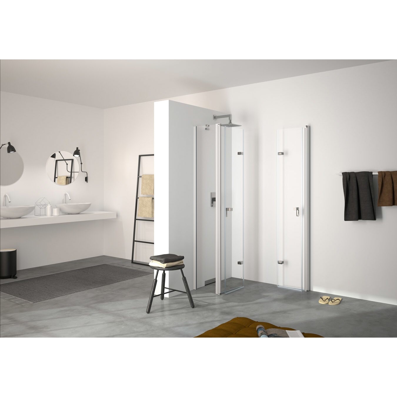 - zum Einbau in Nische und zur Kombination als Ecklösung mit Seitenwand oder als Eckeinstieg