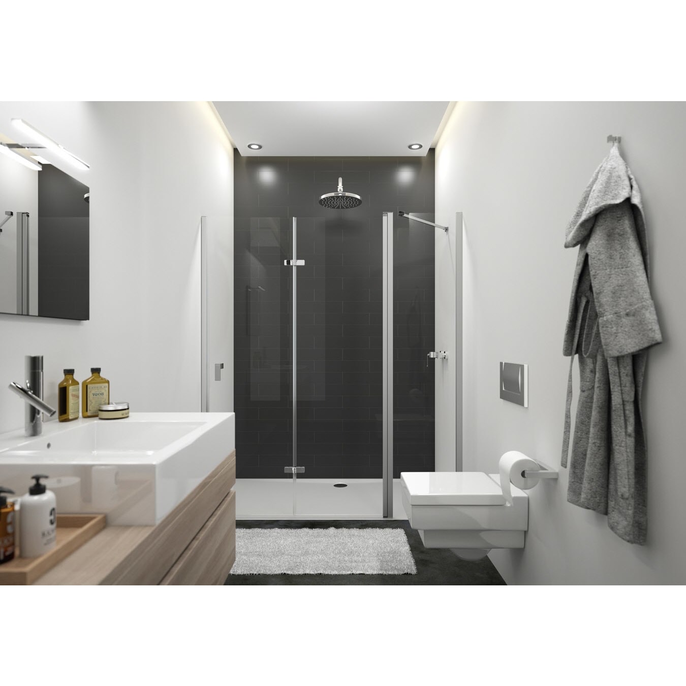- mit Schwallschutzleiste (Höhe 1 cm) für optimale Dichtigkeit, oder schwellenlos installierbar