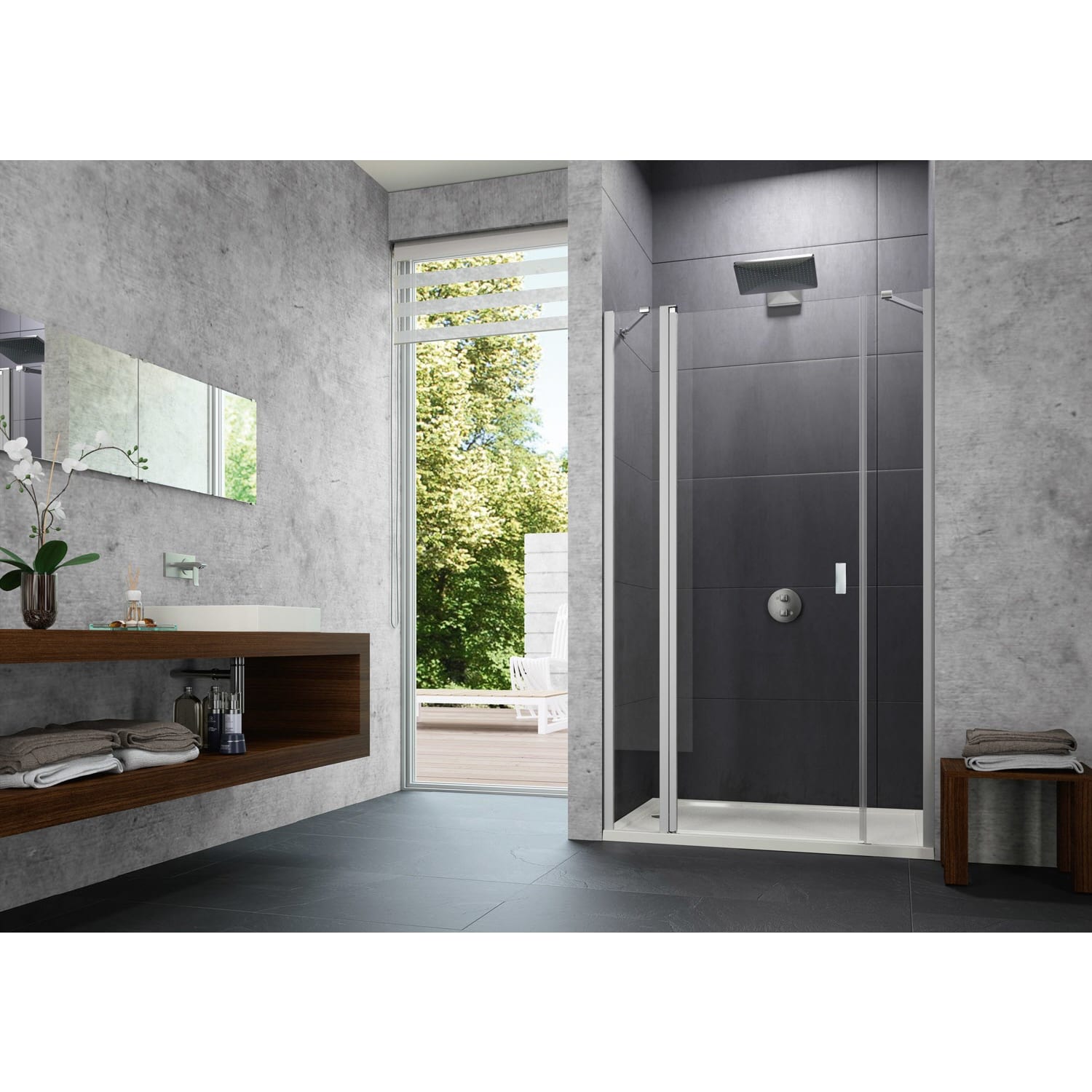 HÜPPE Design pure 4-Eck Schwingtür mit festem Segment und Nebenteil 110 x 190 cm, Glas mit Anti-Plaque