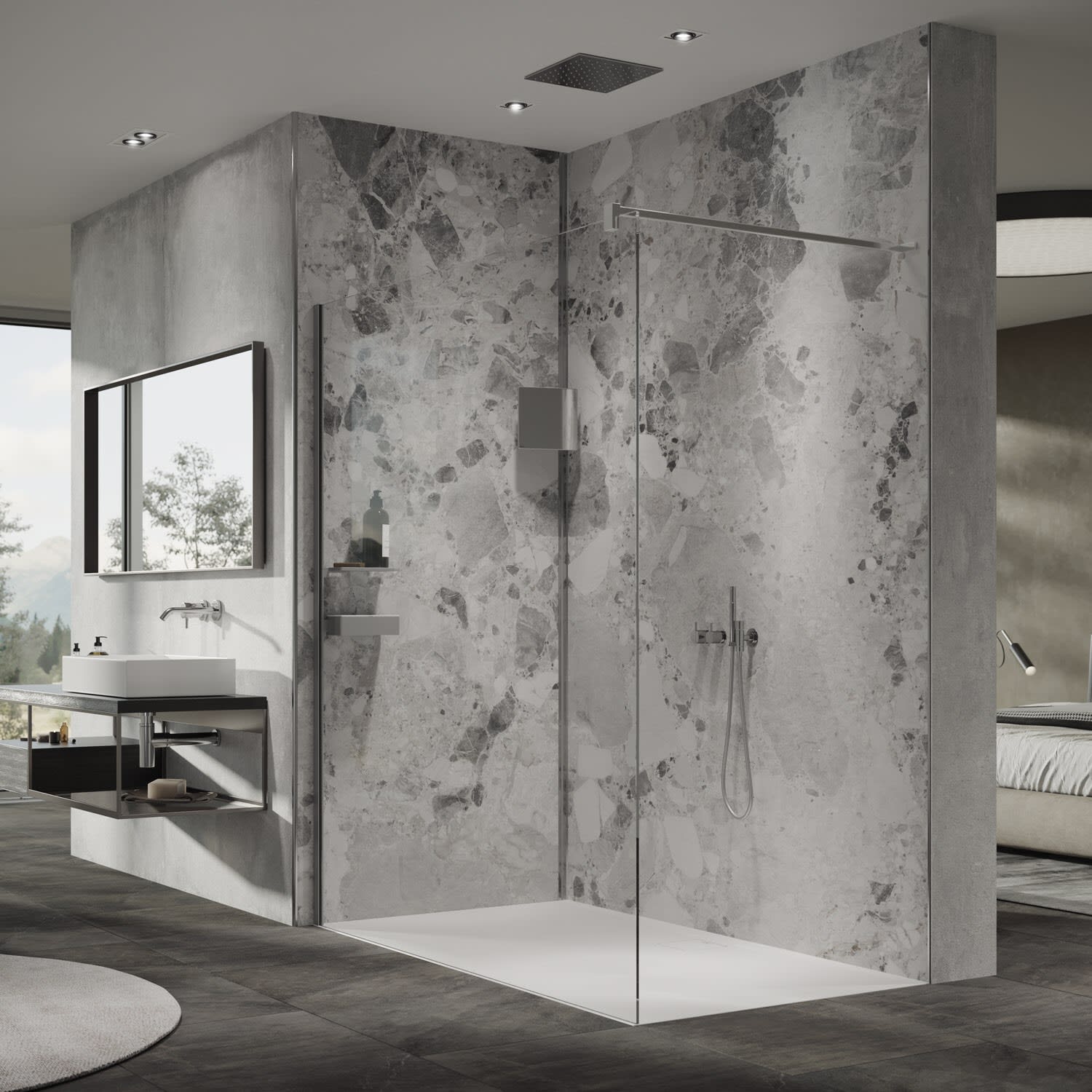 - Renovierung in 48 Stunden: HÜPPE EasyStyle lässt sich mit Silikon und Klebestreifen oder mit einem Flächenkleber direkt auf die Altfliesen aufbringen. Dies ermöglicht eine schnelle Sanierung des Duschbereichs ohne Lärm, Dreck und Staub