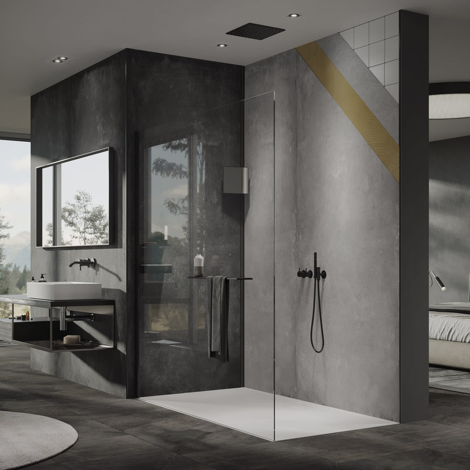 Weiteres Zubehör erhältlich, wie Select+ Wandprofile, EasyStyle Abdichtsystem (zwingend notwendig wenn die DIN 18534 vorgegeben ist) oder Duschsystem ohne Bohren (Art. ES0210000).