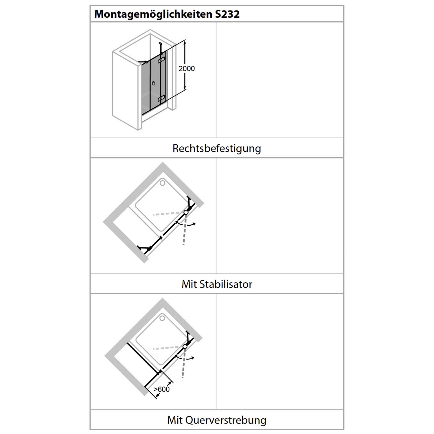 Die angegebenen Abmessungen der Duschkabine beziehen sich nur für Montage auf Duschwannen. Für bodengleiche Montage weichen die Maße ab, bitte vor Bestellung die genauen Abmessungen vom Duschbereich angeben!