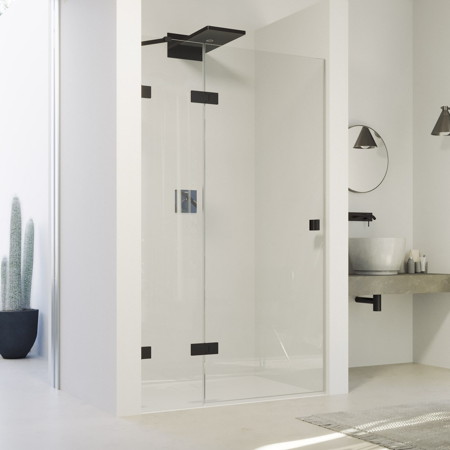 - Mit Schwallschutzleiste (Höhe 1 cm) für optimale Dichtigkeit oder schwellenlos installierbar