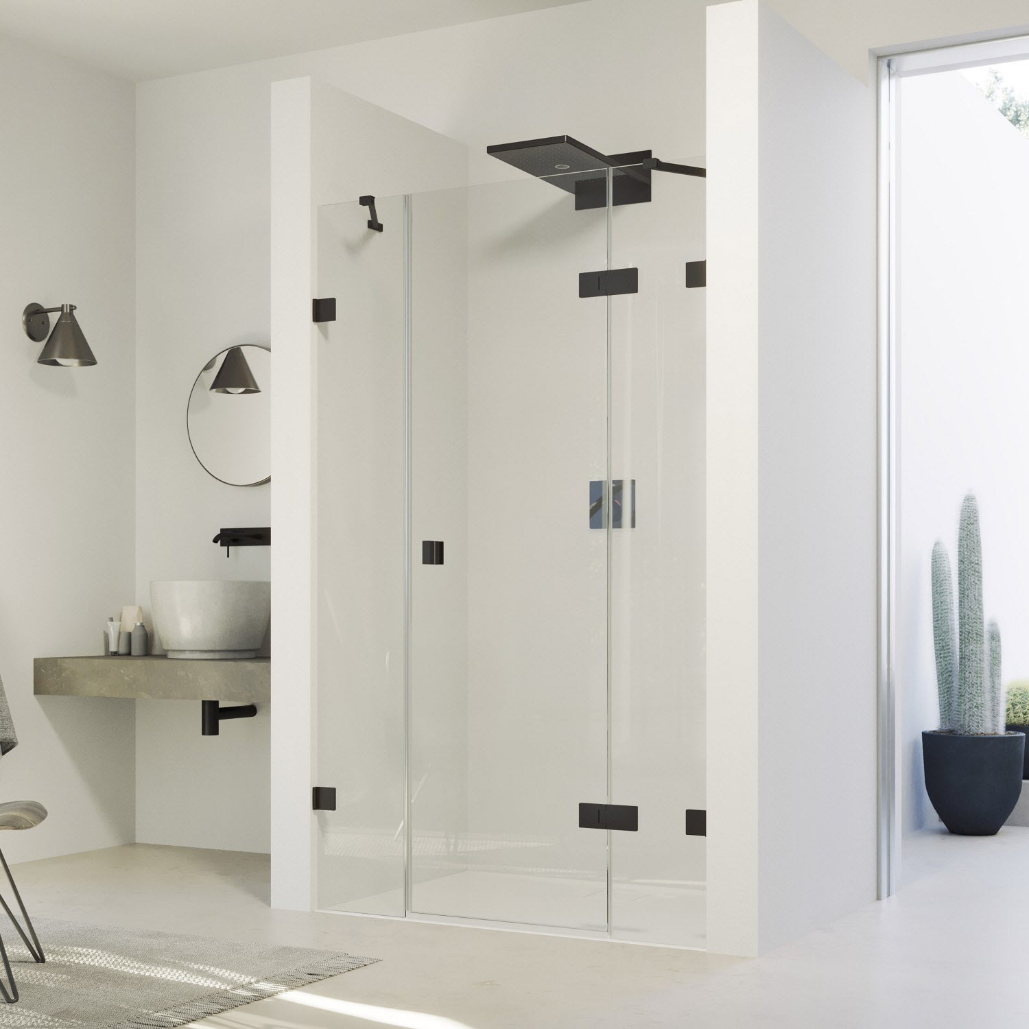 - Mit Schwallschutzleiste (Höhe 1 cm) für optimale Dichtigkeit oder schwellenlos installierbar