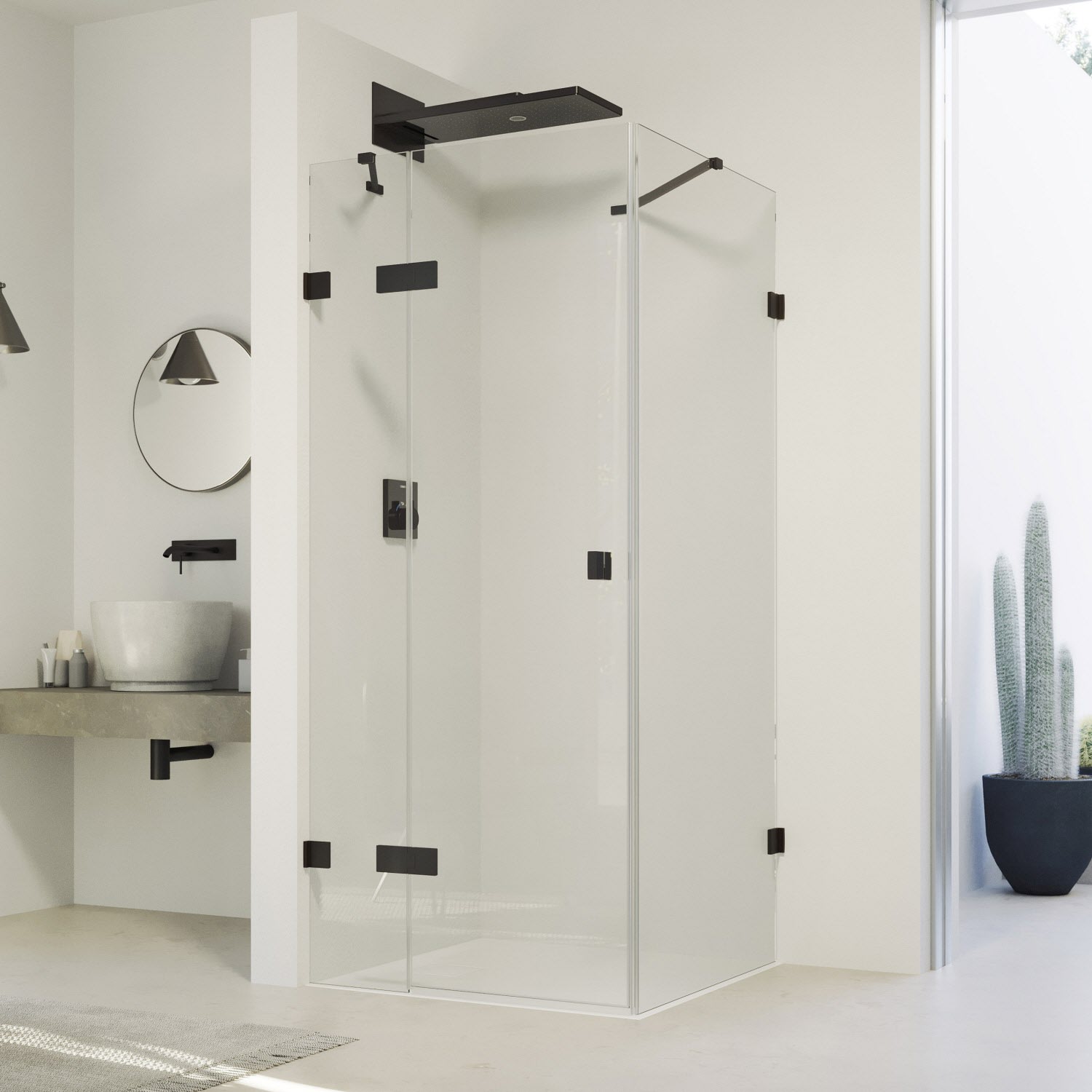 - Mit Schwallschutzleiste (Höhe 1 cm) für optimale Dichtigkeit oder schwellenlos installierbar