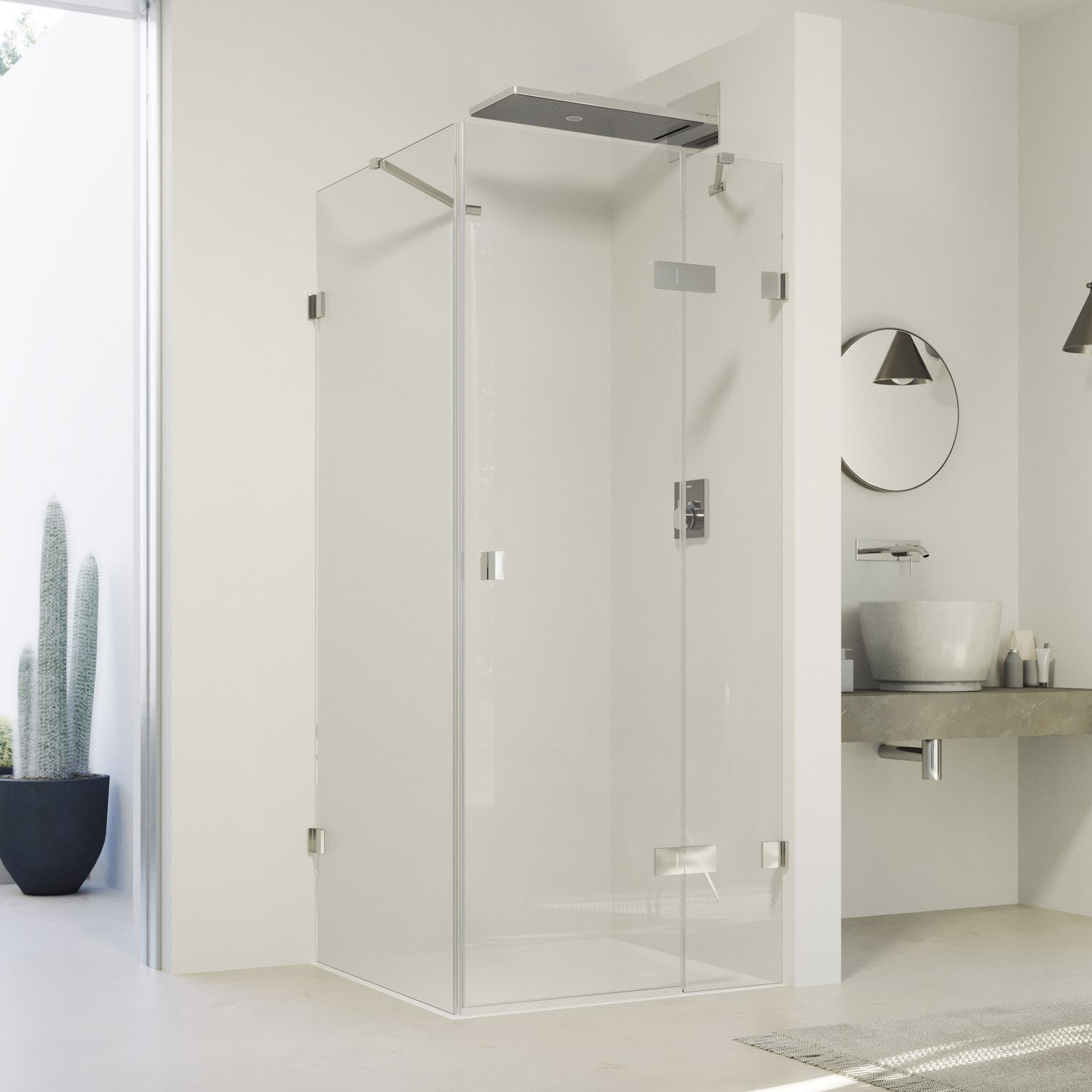 HÜPPE SolvaPro Schwingtür mit festem Segment und Seitenwand 120,1-150 x 120-200 cm, mit Anti-Plaque