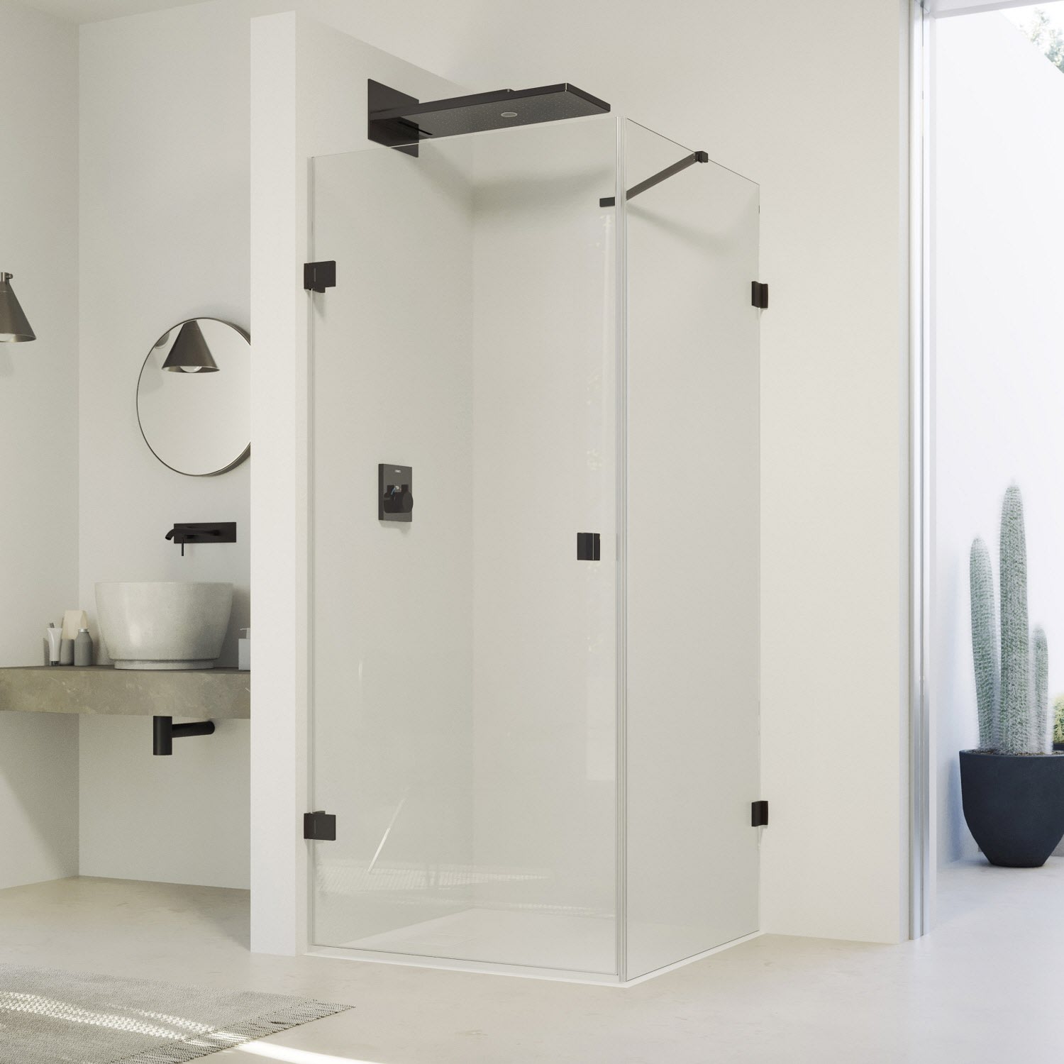 - Mit Schwallschutzleiste (Höhe 1 cm) für optimale Dichtigkeit oder schwellenlos installierbar