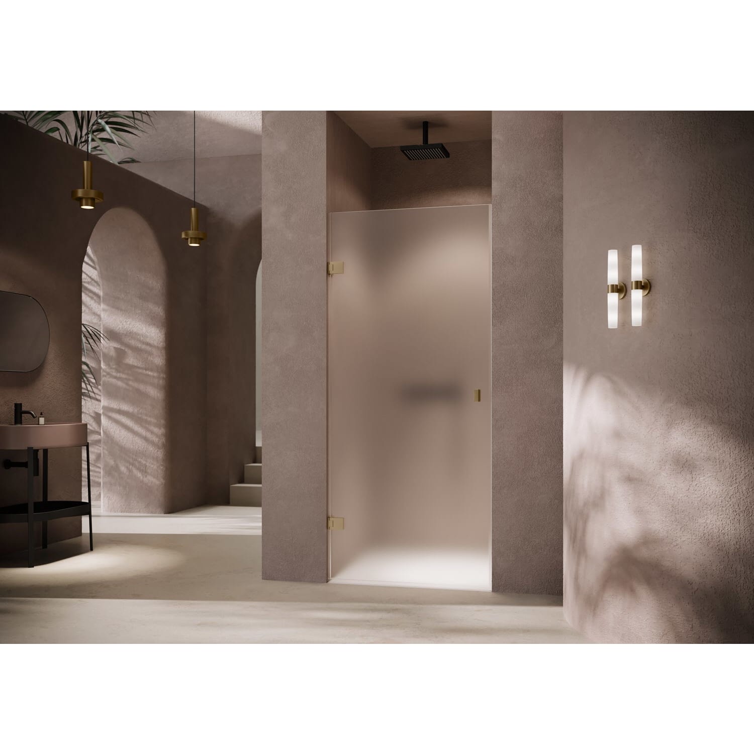 - Rahmenlose Tür mit einem Glasflügel, nach innen und außen öffnend