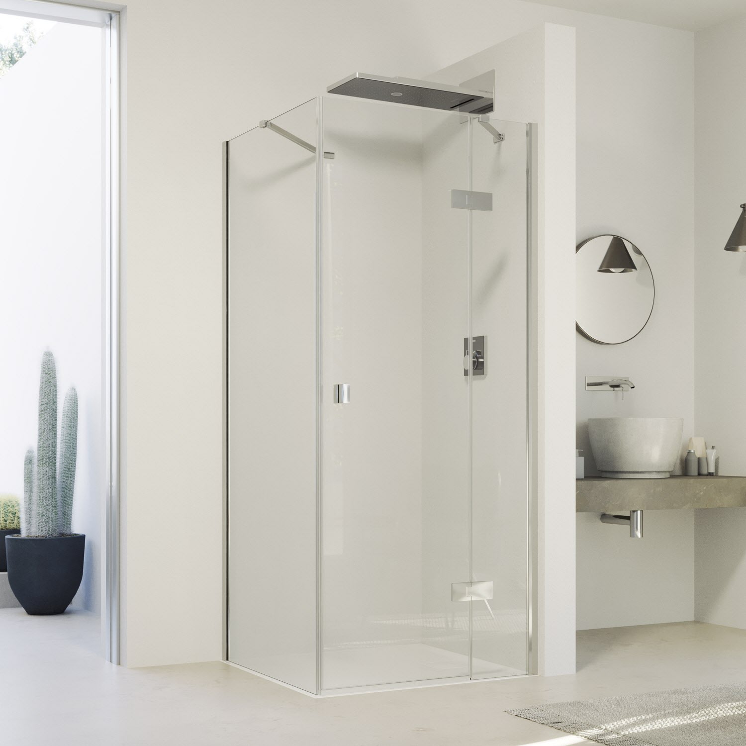 - Verglasung mit 8 mm Einscheiben-Sicherheitsglas nach DIN EN 12150, optional mit der pflegeleichten Oberflächenveredelung HÜPPE Anti-Plaque