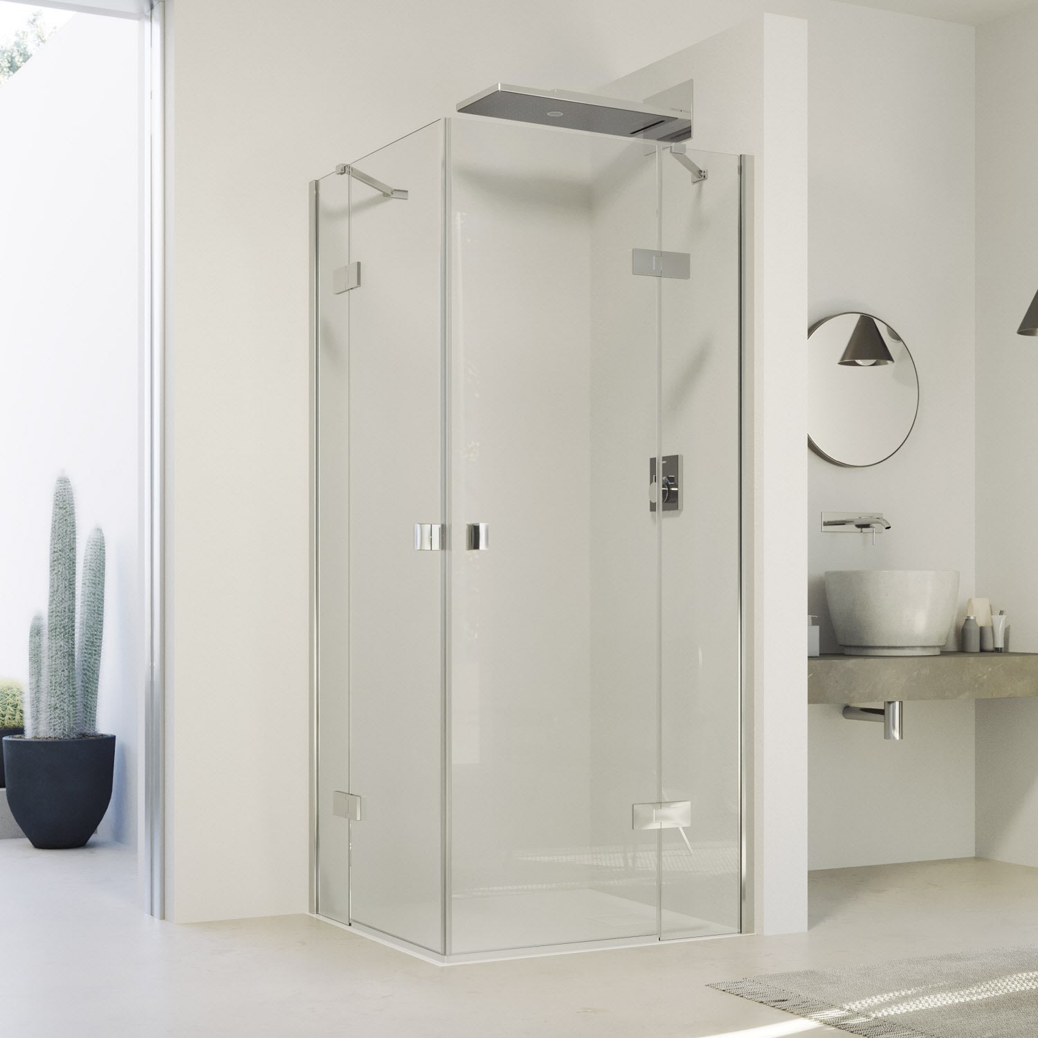 - Verglasung mit 8 mm Einscheiben-Sicherheitsglas nach DIN EN 12150, optional mit der pflegeleichten Oberflächenveredelung HÜPPE Anti-Plaque