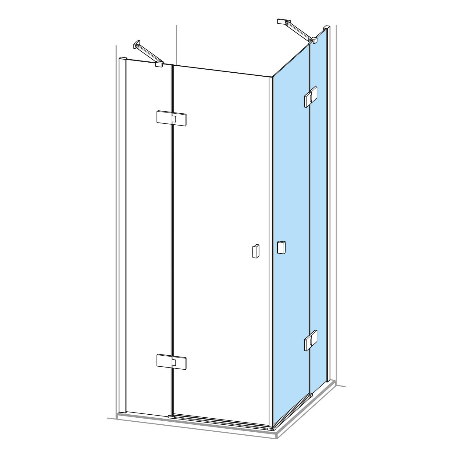 Ausführung: Schwingtür mit festem Segment für Eckeinstieg, Rechtsbefestigung
