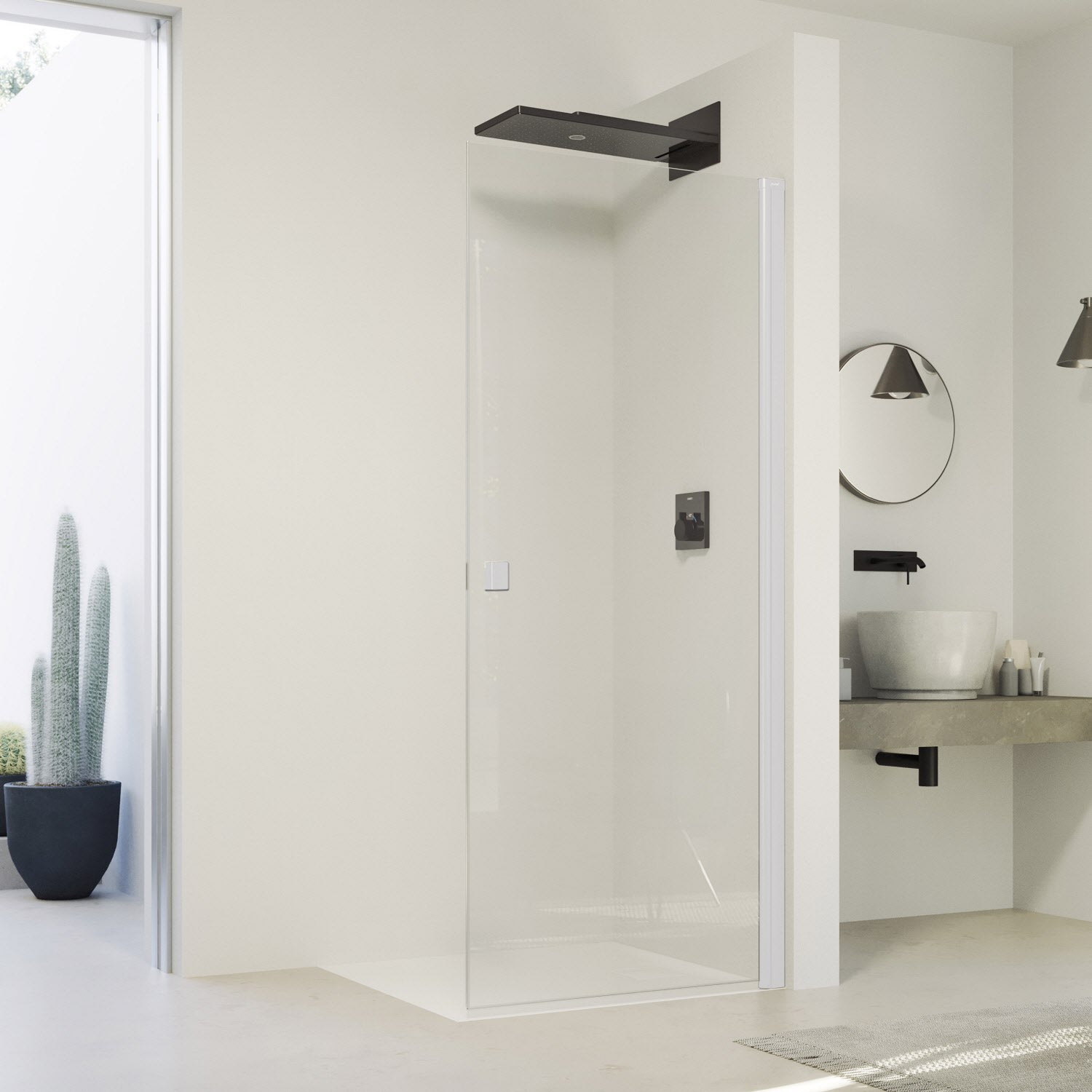 - Zum Einbau in einer Nische oder Kombination mit SolvaPro Seitenwand