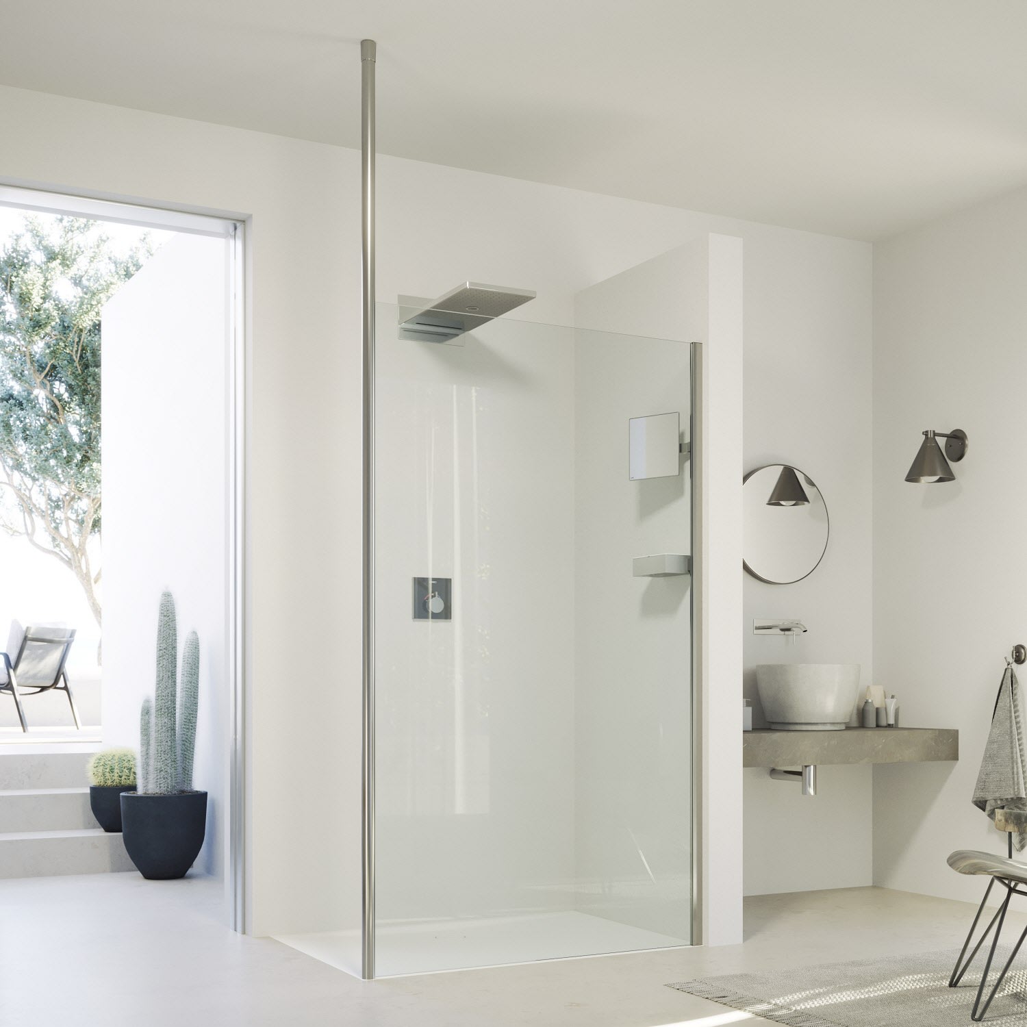- Teilgerahmte Walk-In-Glasanlage, Linksbefestigung