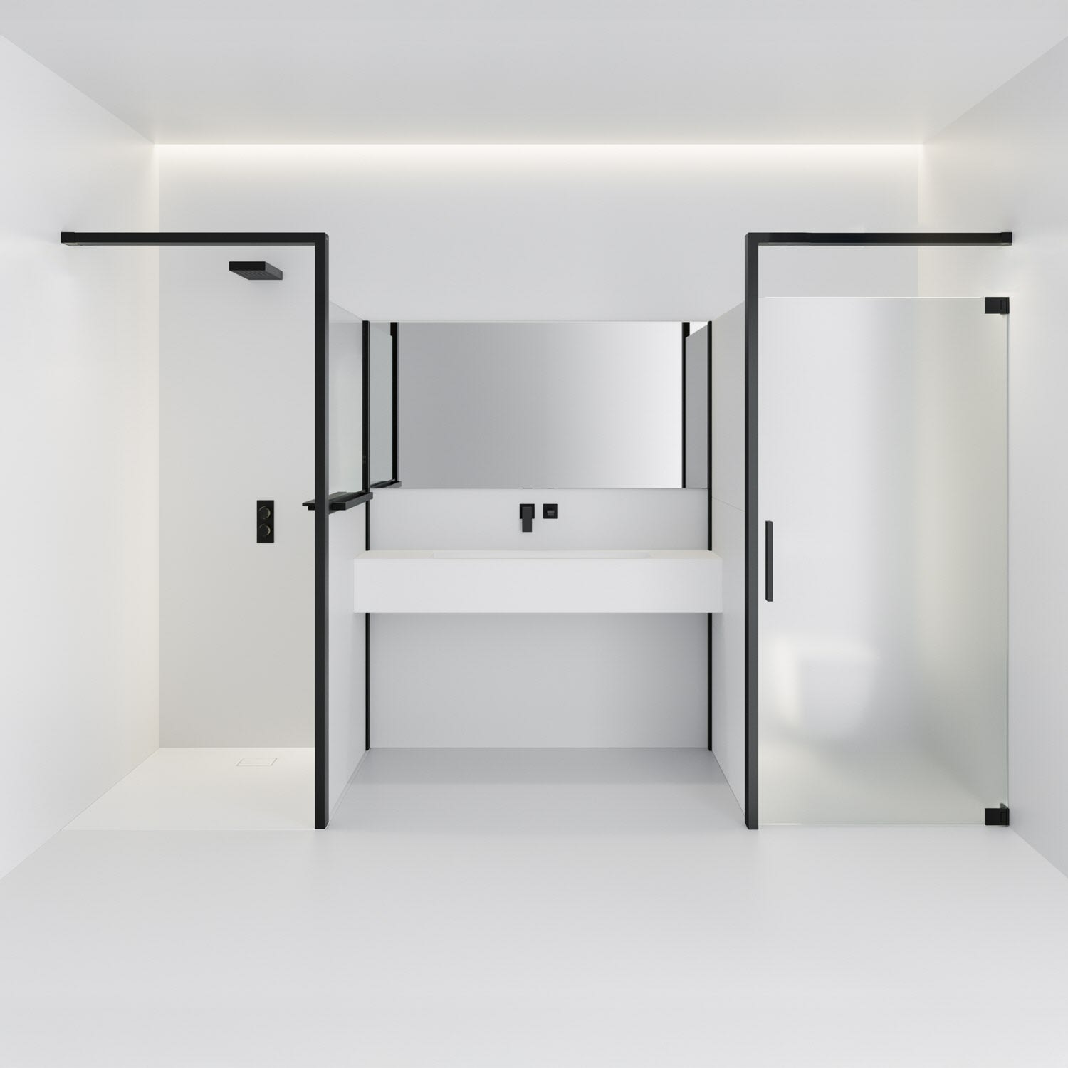 - innen integriertes Tablet aus HÜPPE Solid Surface in mattschwarz
