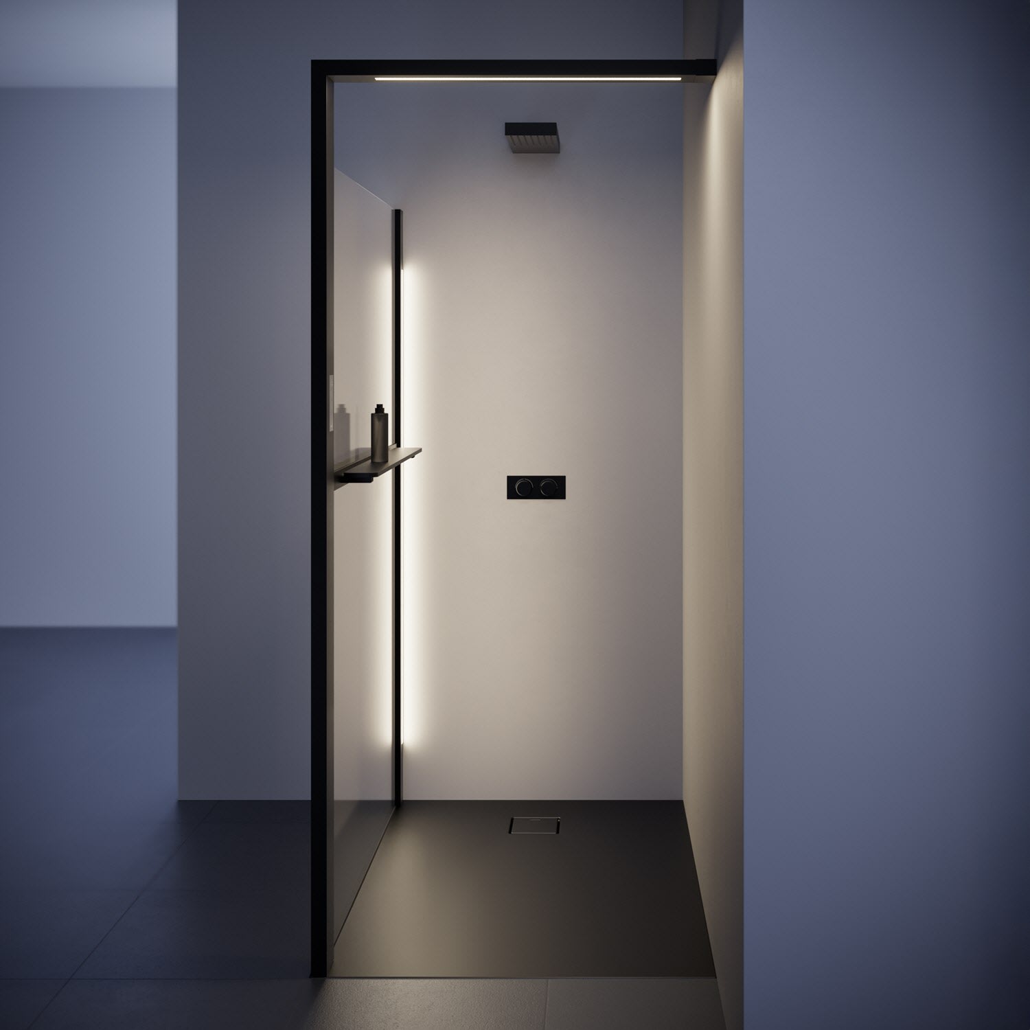 - innen integriertes Tablet aus HÜPPE Solid Surface in mattschwarz