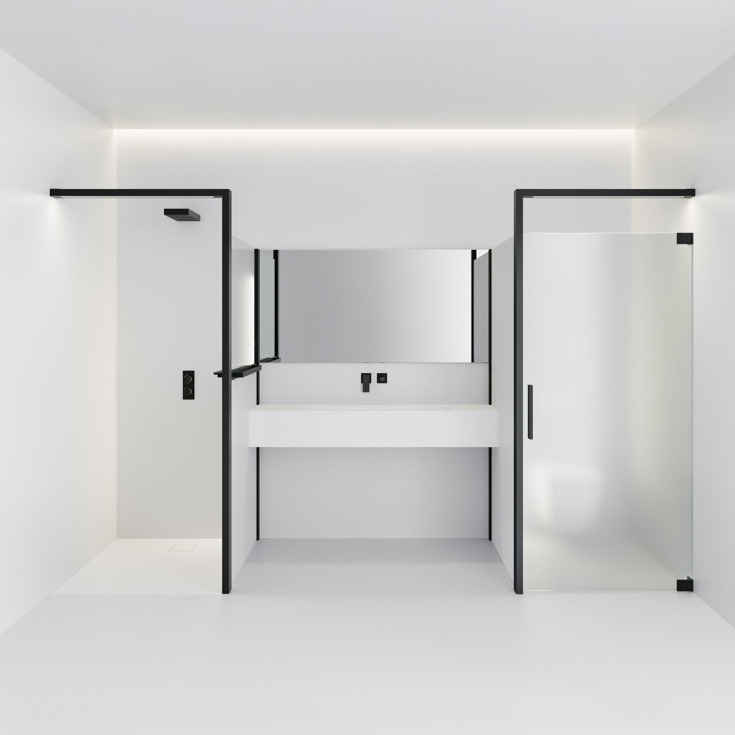 - innen integriertes Tablet aus HÜPPE Solid Surface in mattschwarz