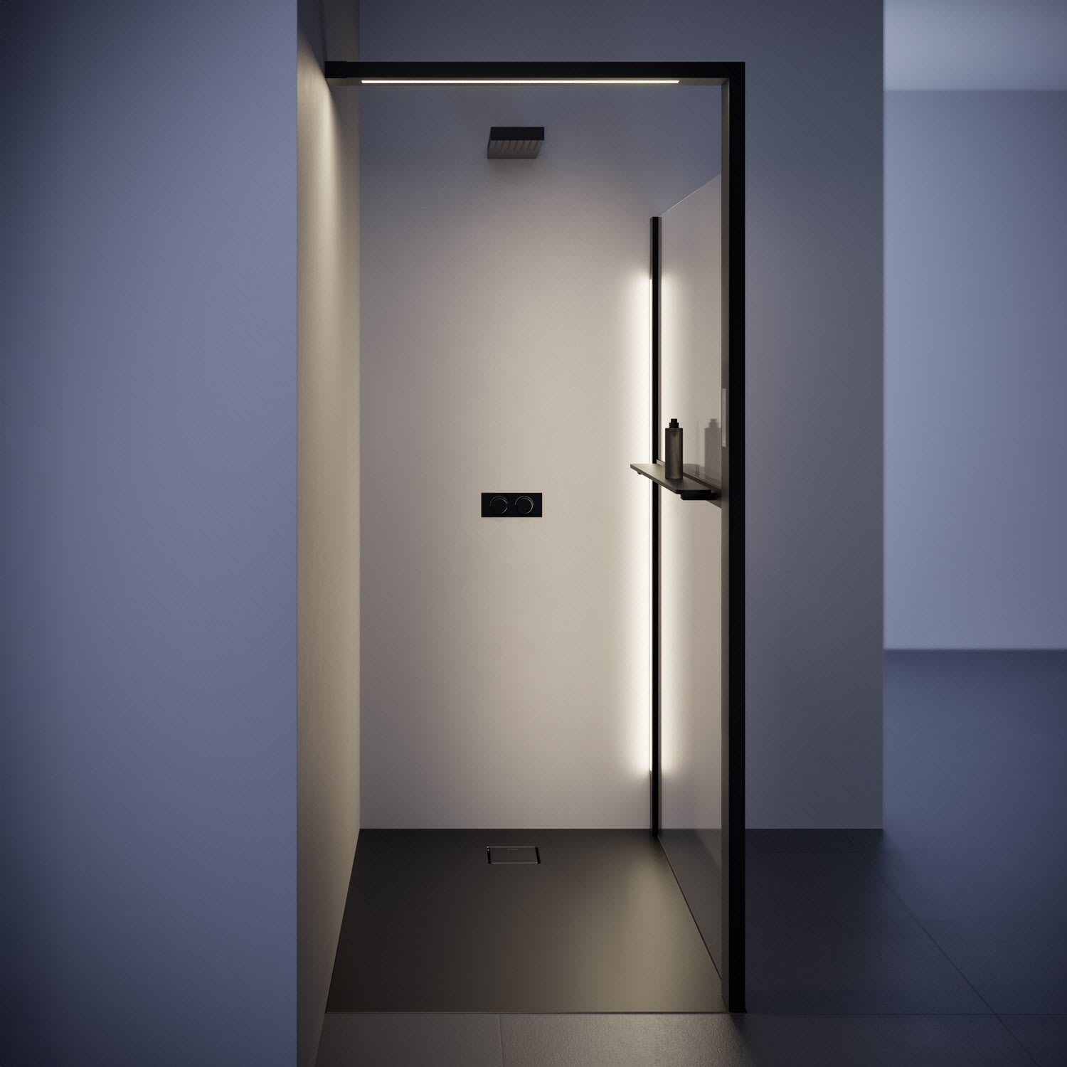 - innen integriertes Tablet aus HÜPPE Solid Surface in mattschwarz